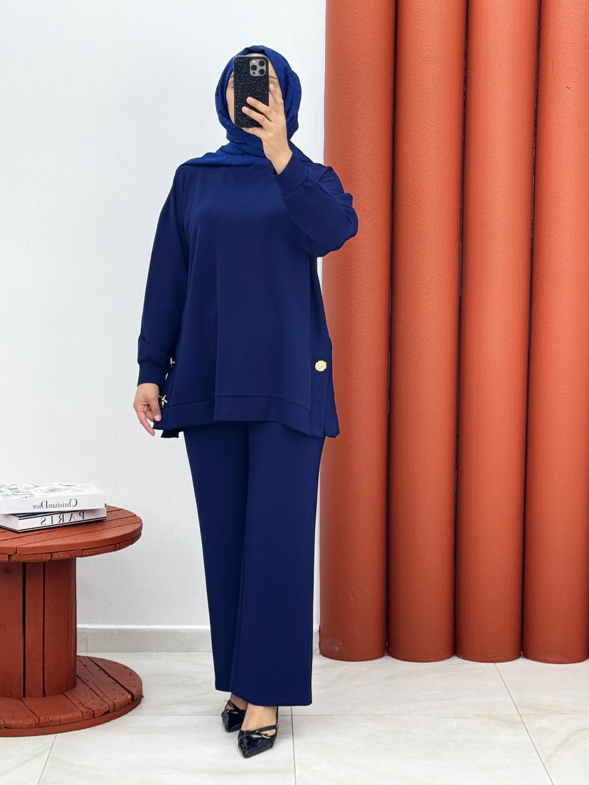 Oysho kumaş ikili takım, yandan yırtmaç detayı ve yan kısmındaki aksesuar düğme ile yıldız süslemesiyle modern ve dikkat çekici bir görünüm sunar. Rahat kesimi ve yumuşak dokusuyla gün boyu konfor sağlarken, şık detayları sayesinde hem ev hem günlük kombinlerde stil sahibi bir tercih olur. 38-40 beden gögüs ölçüsü 112 cm 42-44 beden gögüs ölçüsü 114 cm 46-48 beden gögüs ölçüsü 116 cm 50-52 beden gögüs ölçüsü 118 cm manken boy 170 cm manken kilo 65
