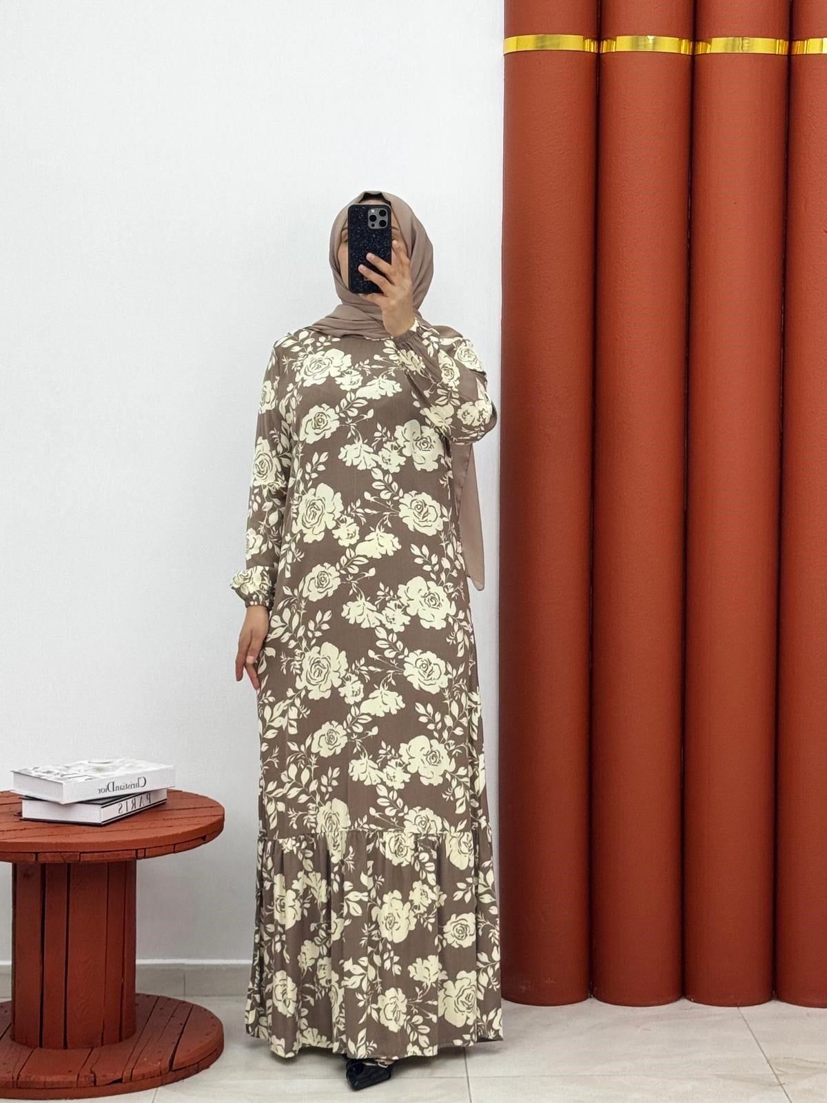 Viskon elbise, pamuklu karışımlı kumaştan üretilmiş olup yumuşak dokusu ve nefes alabilir yapısıyla gün boyu konfor sağlar. Enseden fermuarlı tasarımı sayesinde kolay giyilip çıkarılabilir, şık ve pratik bir kullanım sunar.