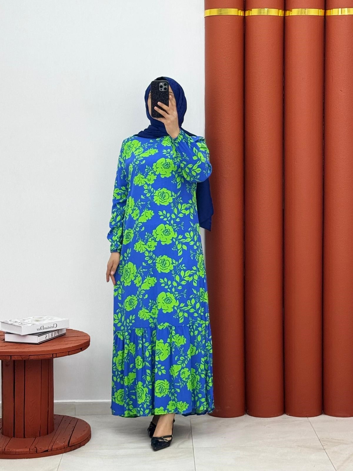 0076 Viskon pamuklu elbise mavi (A016-0076)