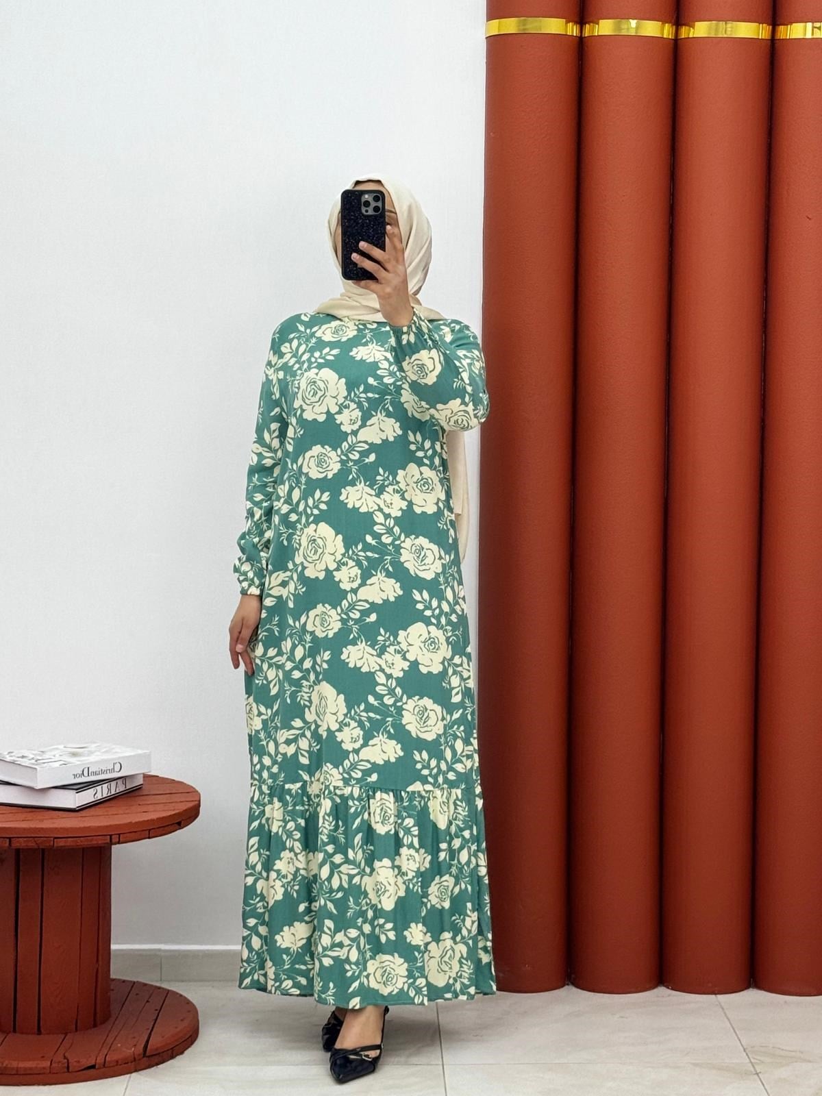 0076 Viskon pamuklu elbise yeşil (A016-0076)
