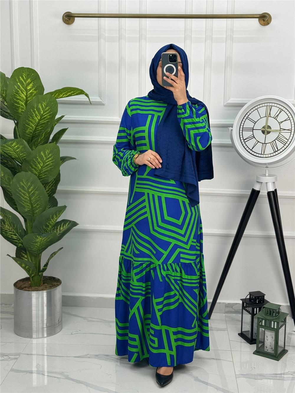 069 Viskon Pamuklu Elbise Yeni Sezon Yeni Desen Yeşil (A012-069)