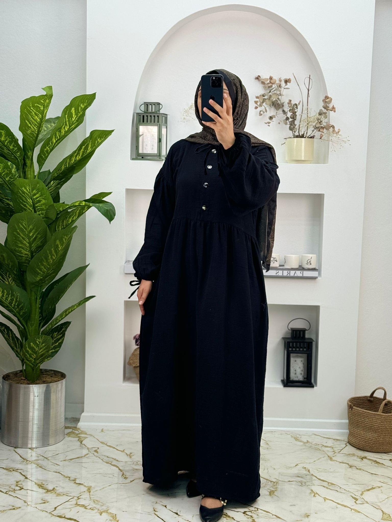 1014 yeni sezon müslim yarı düğmeli elbise siyah (B011-1014)