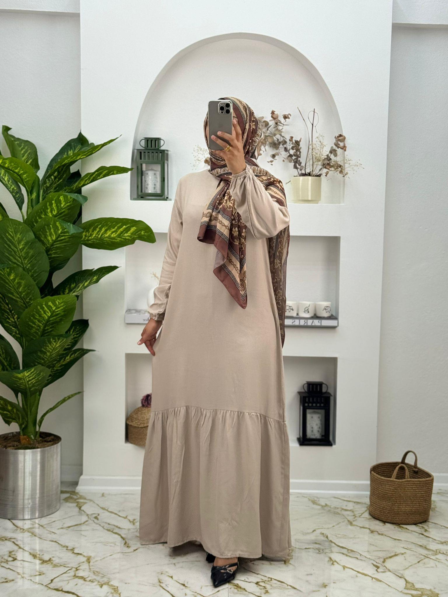1270 Yeni Sezon Belmando Kumaş Azra Elbise Renk Krem (D001-1270)