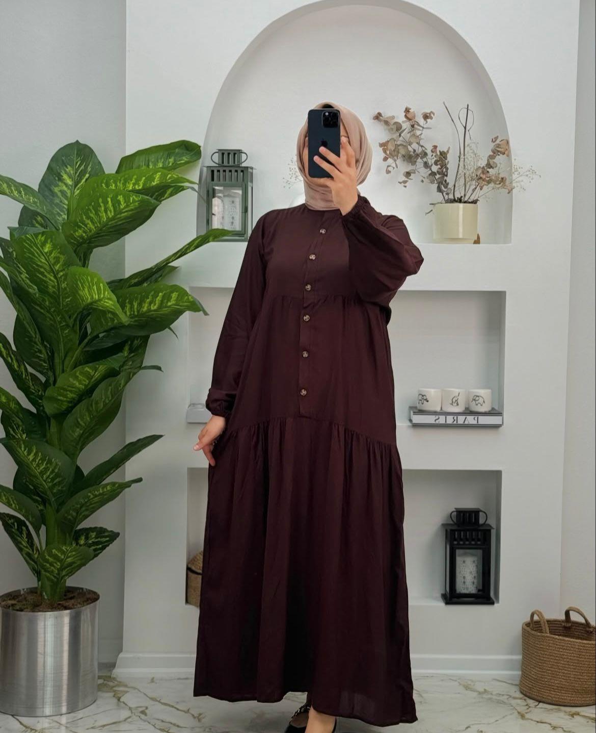 1313 Yeni Sezon Viskon Önden Düğmeli Alaçatı Elbise Renk Kahverengi