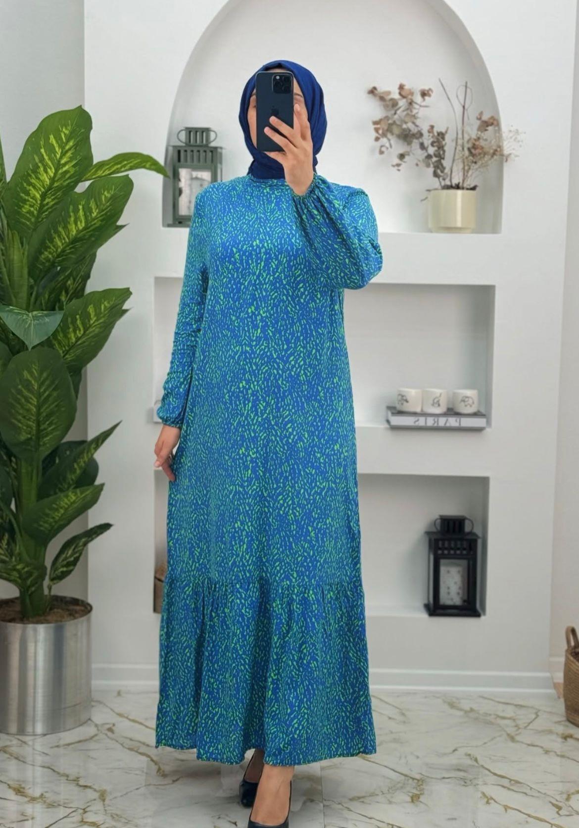1565 Yeni Sezon Viskon Pamuklu Kumaş Aslı Model Elbise Renk Mavi (C012-1565)