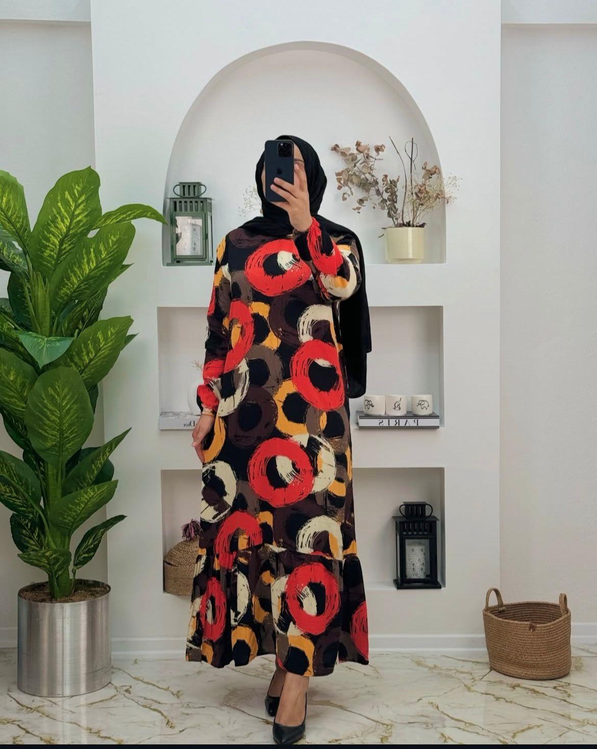 Viskon kumaş yuvarlak desenli elbise, hafif ve nefes alabilir viskon kumaşı sayesinde gün boyu konfor sunar. Üzerindeki yuvarlak desenler elbiseye hareketli ve modern bir görünüm kazandırır. Günlük kullanım için ideal olan bu elbise, şıklığı ve rahatlığı bir arada arayanlar için güzel bir tercihtir.