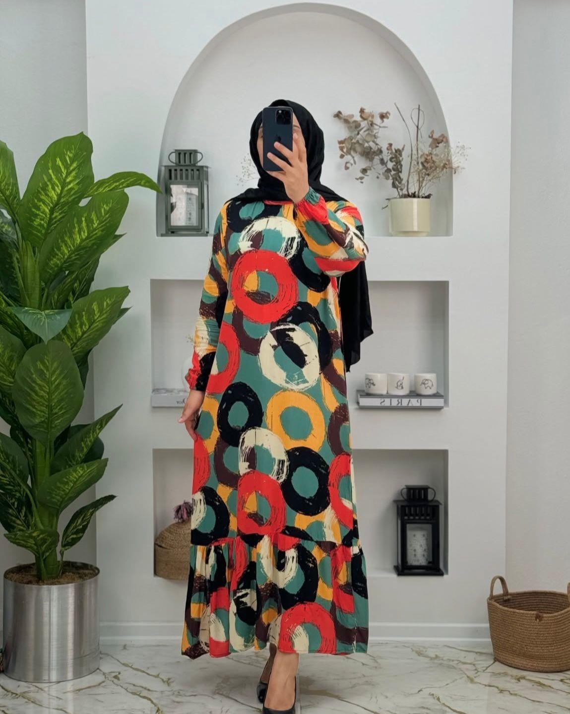 Viskon kumaş yuvarlak desenli elbise, hafif ve nefes alabilir viskon kumaşı sayesinde gün boyu konfor sunar. Üzerindeki yuvarlak desenler elbiseye hareketli ve modern bir görünüm kazandırır. Günlük kullanım için ideal olan bu elbise, şıklığı ve rahatlığı bir arada arayanlar için güzel bir tercihtir.
