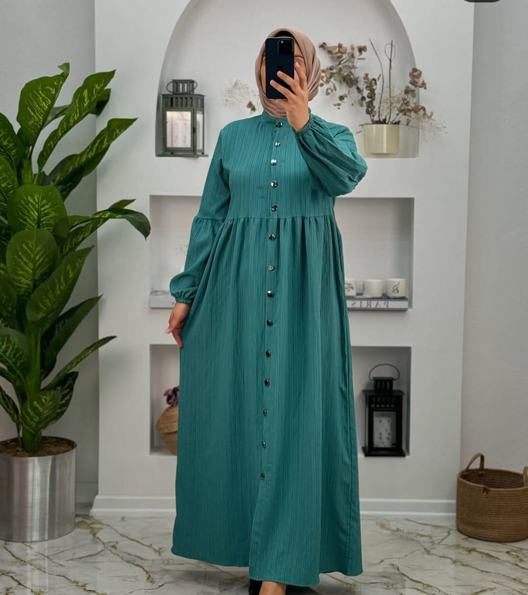 1630 krinkil kumaş yeni sezon boydan düğmeli elbise yeşil (C006-1630)