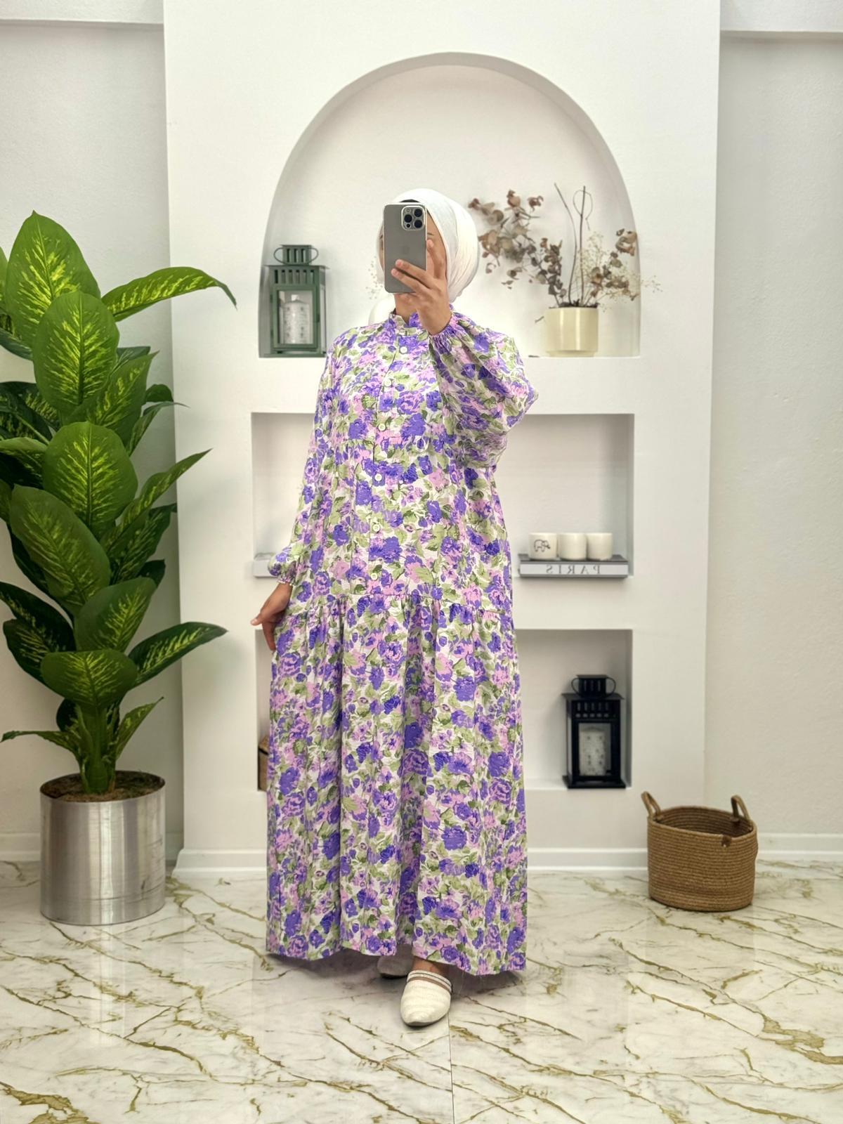 1645 Yeni Sezon Çiçekli Mango Elbise Renk Mor (C001-1645)