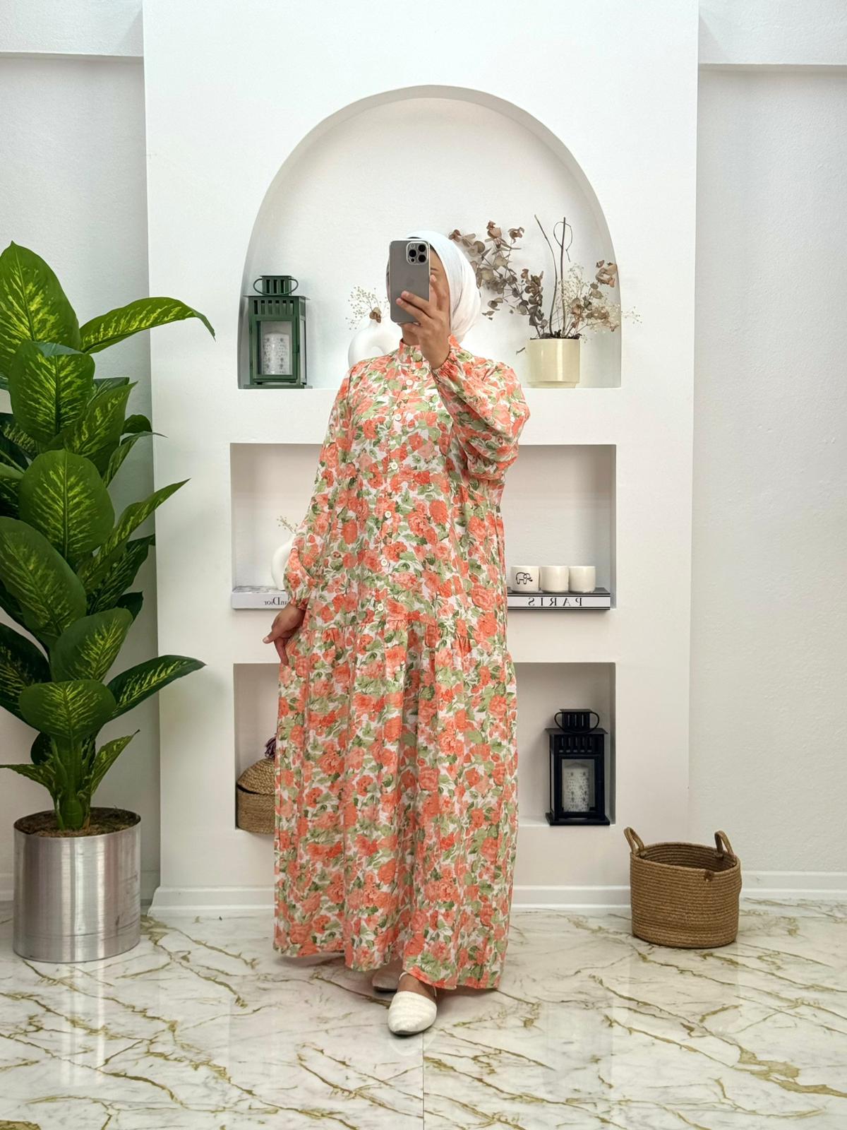 1645 Yeni Sezon Çiçekli Mango Elbise Renk Turuncu (C001-1645)