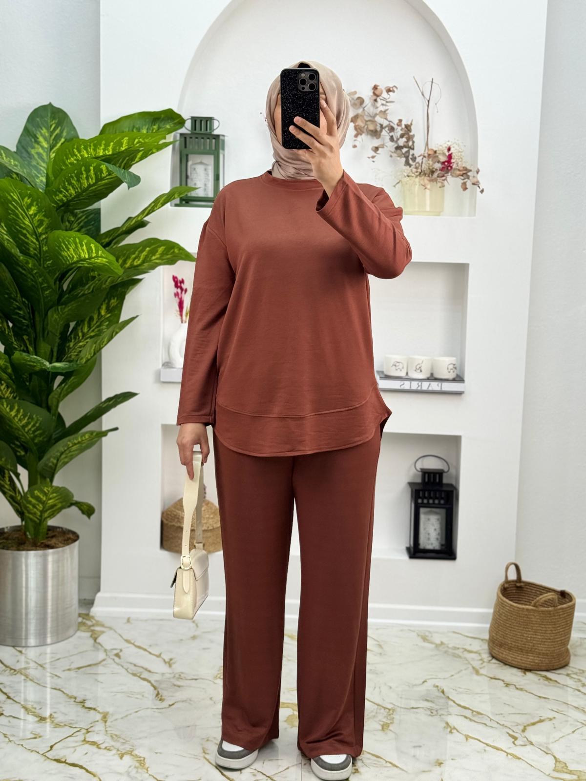 1656 Oysho Kumaş Düz Model İkili Takım Renk Kahverengi (E009-1656)
