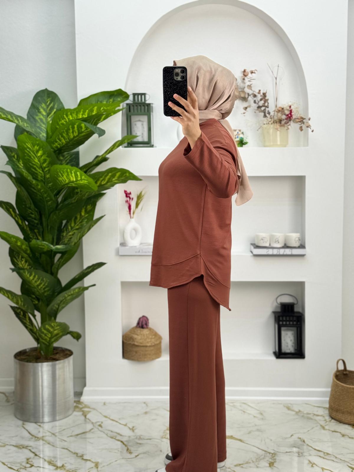 1656 Oysho Kumaş Düz Model İkili Takım Renk Kahverengi