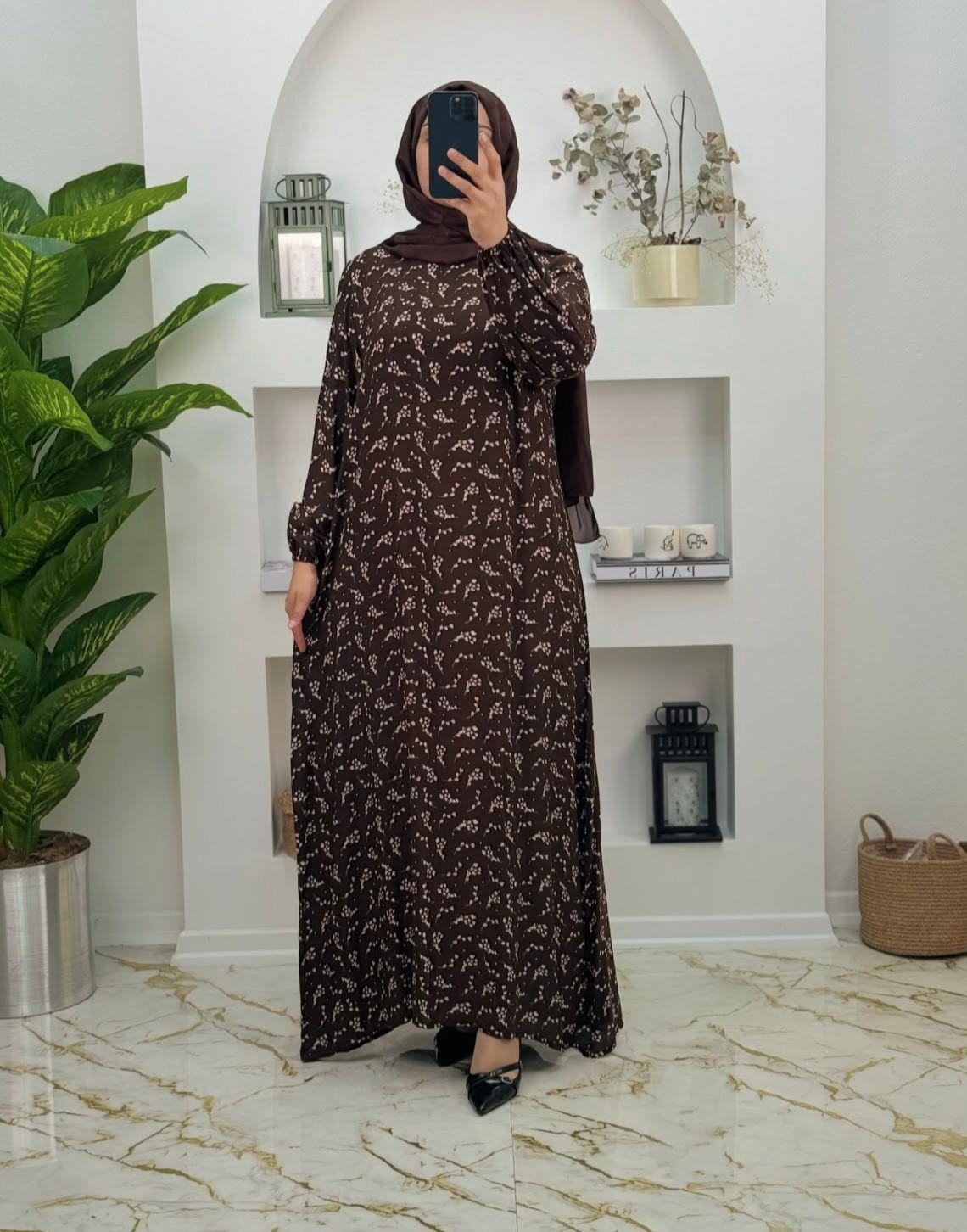 1680 Yeni Sezon Viskon Kumaş Seyyar Kemerli Elbise Renk Kahverengi