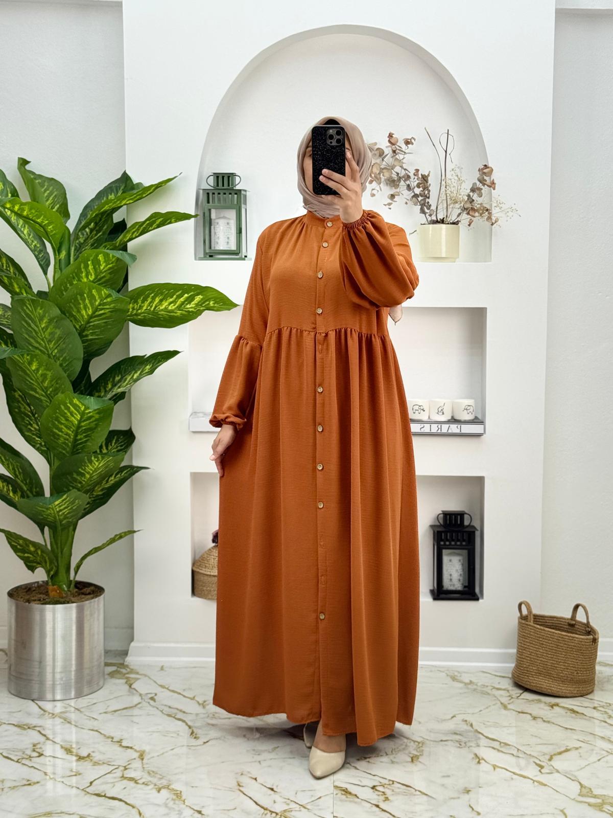 2040 Yeni Sezon Airobin Kumaş Boydan Düğmeli Elbise Renk Kiremit