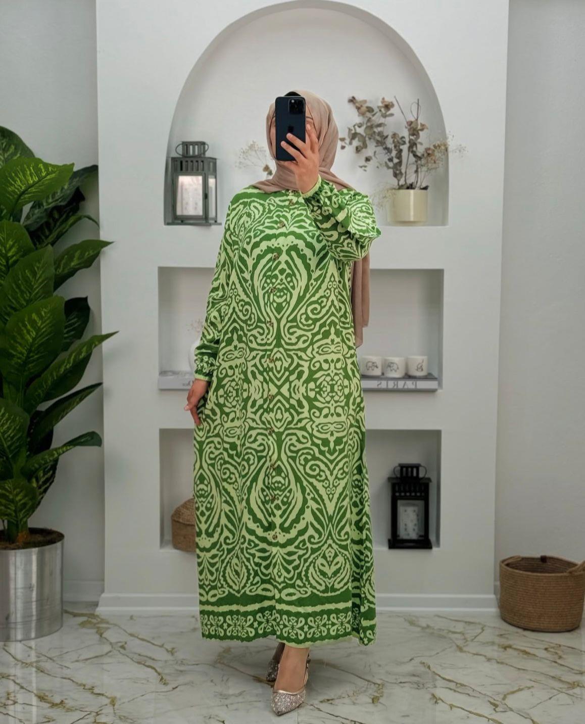 2147 Yeni Sezon Önden Düğmeli Giy Çık Elbise Renk Yeşil