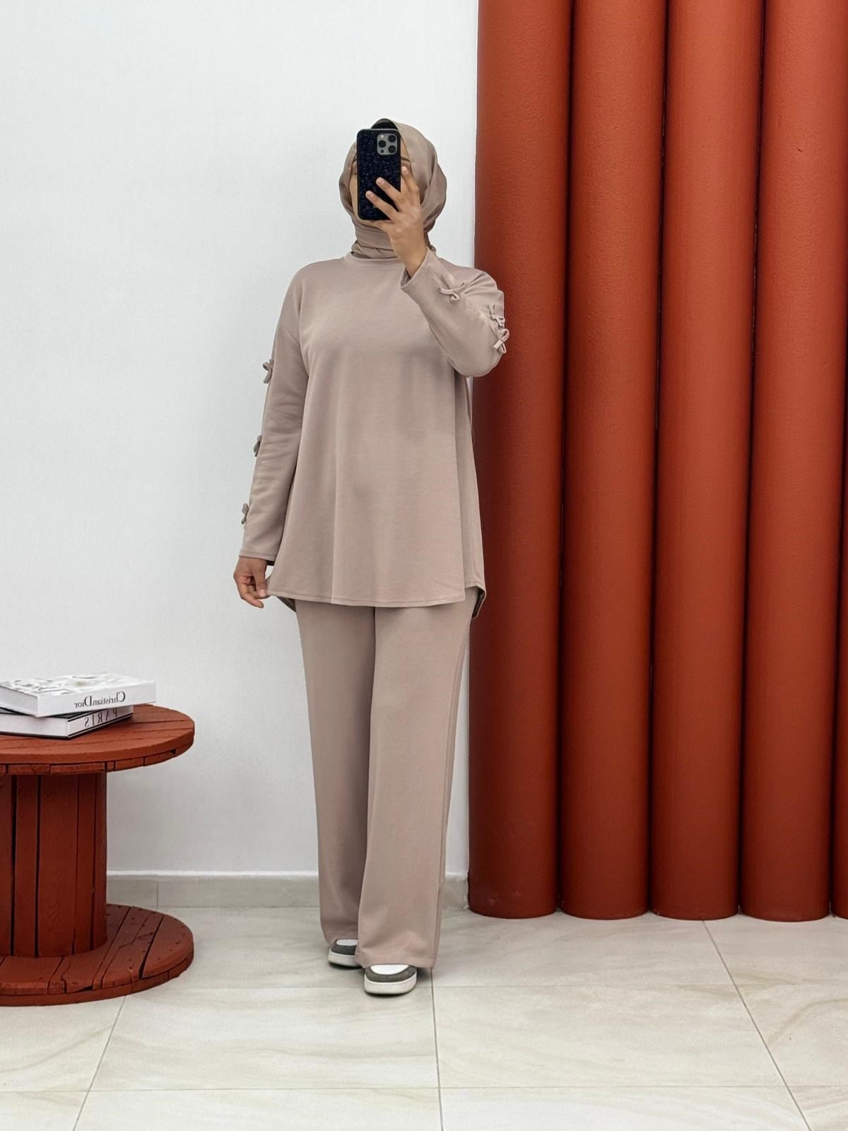 2416 Oysho ikili takım kolları bagcıklı ekru (F012-2416)