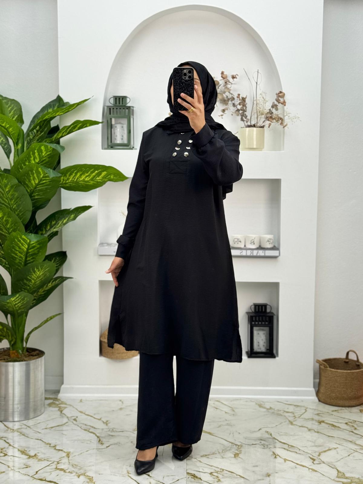 2549 Yeni Sezon Airobin Yarım Düğmeli İkili Takım Renk Siyah