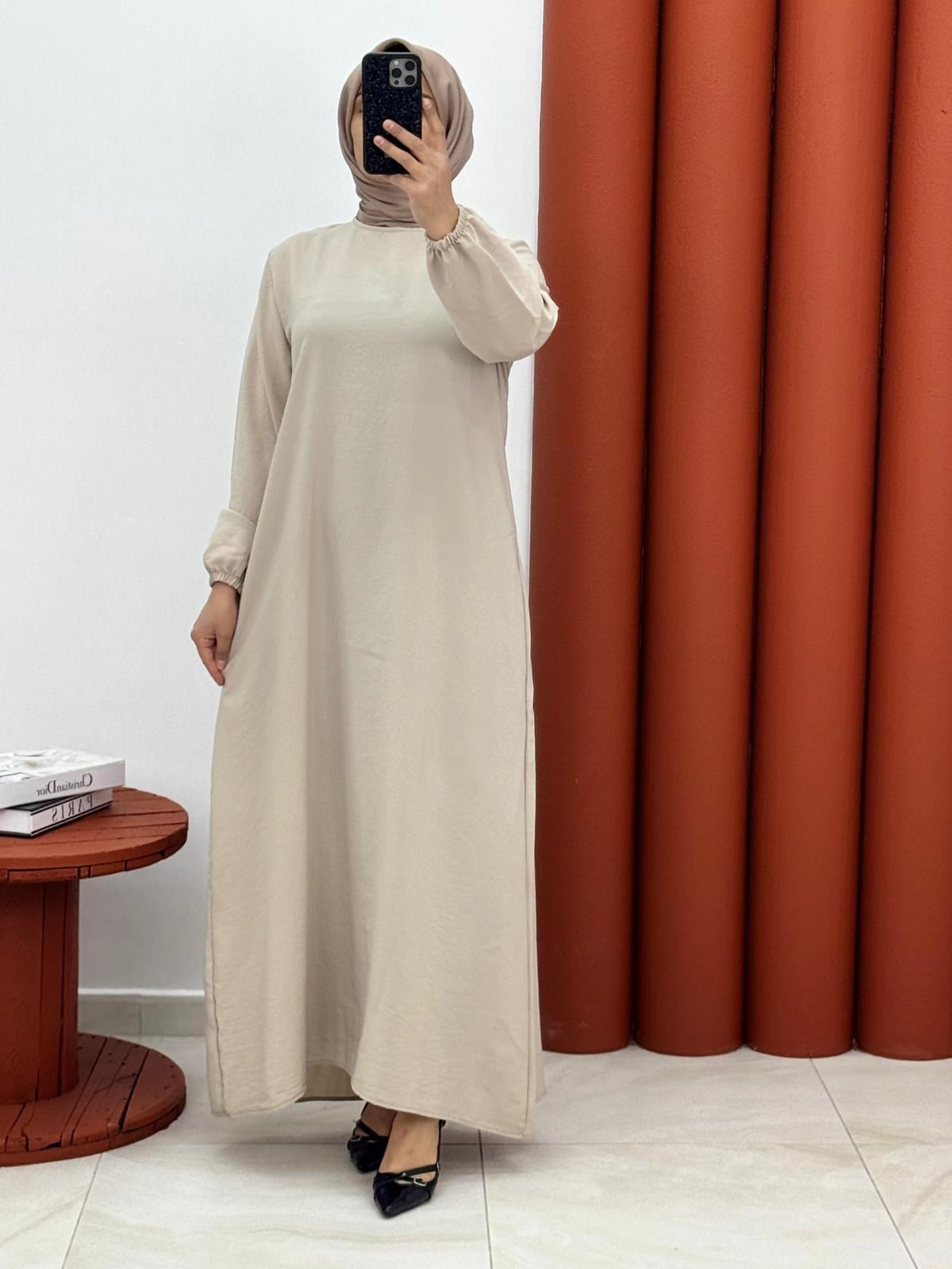 Airobin kumaştan üretilmiş, hafif ve nefes alabilen yapıya sahip düz kesim elbisedir. Seyyar kemeri sayesinde bel ayarı yapılabilir, gün boyu konfor ve şıklık sunar.