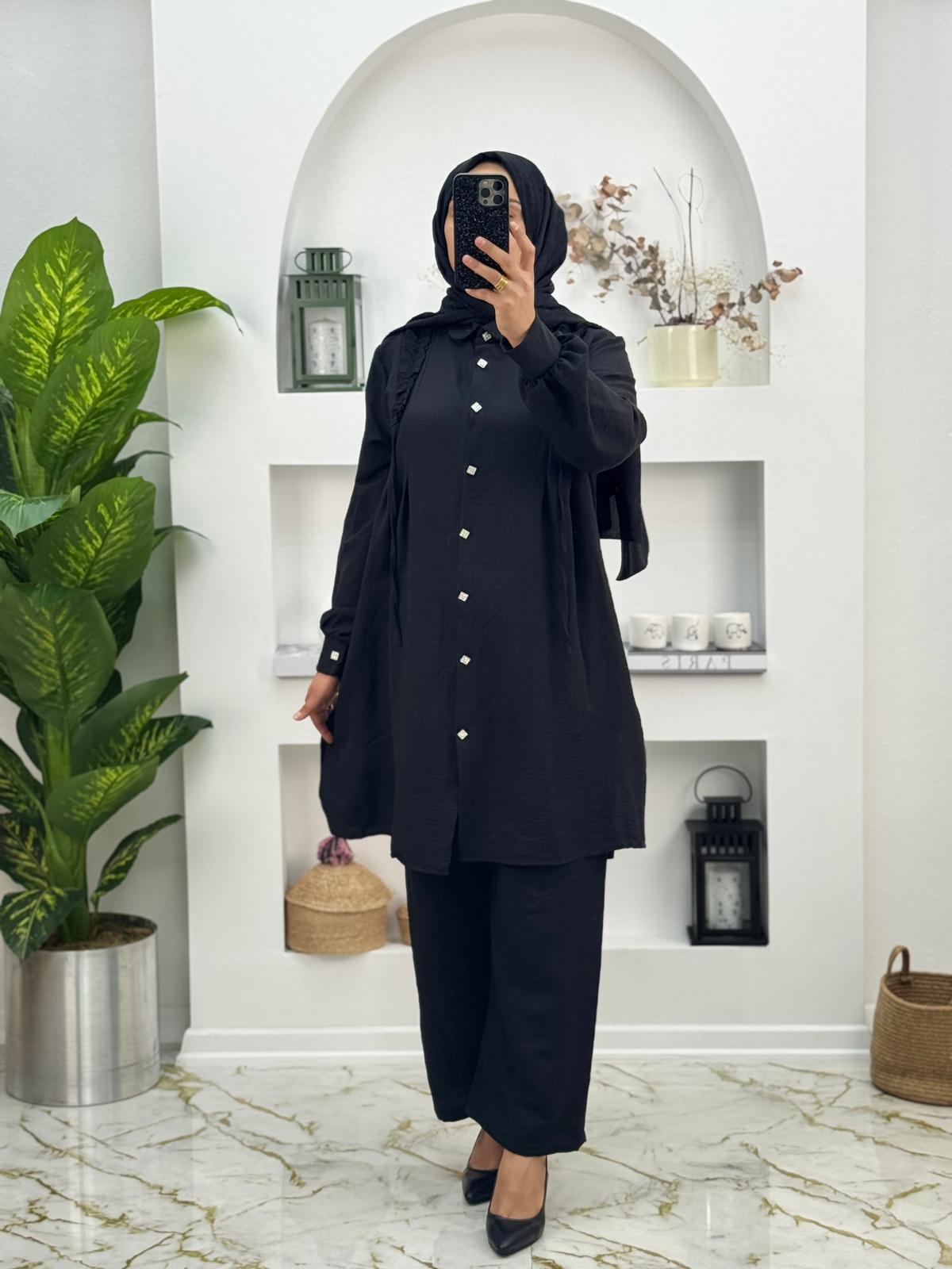2709 Airobin Kumaş Fırfır Detaylı İkili Takım Renk Siyah (D0011-2709 )
