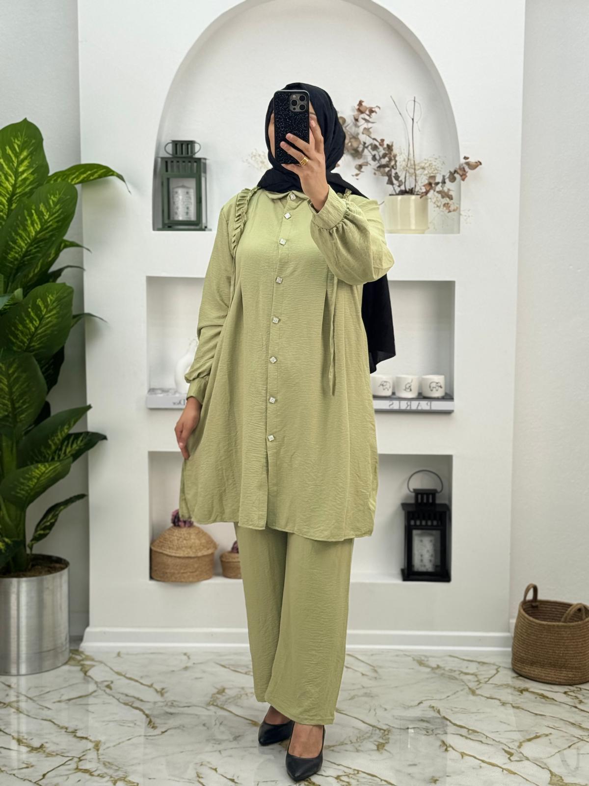 2709 Airobin Kumaş Fırfır Detaylı İkili Takım Renk Yeşil (D0011-2709 )