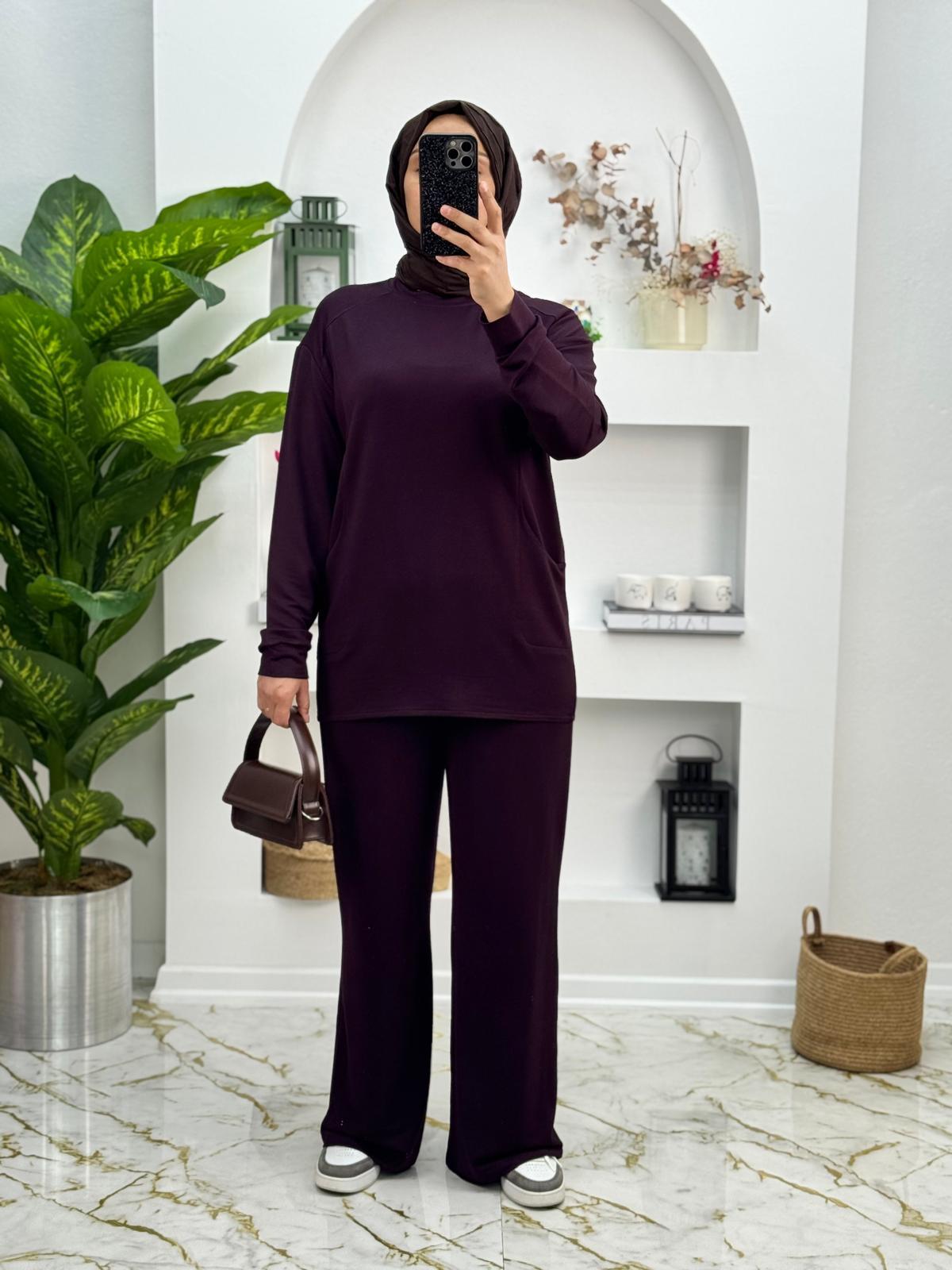 2789 Oysho Kumaş Cepli İkili Takım Renk Mürdüm (E009-2789)