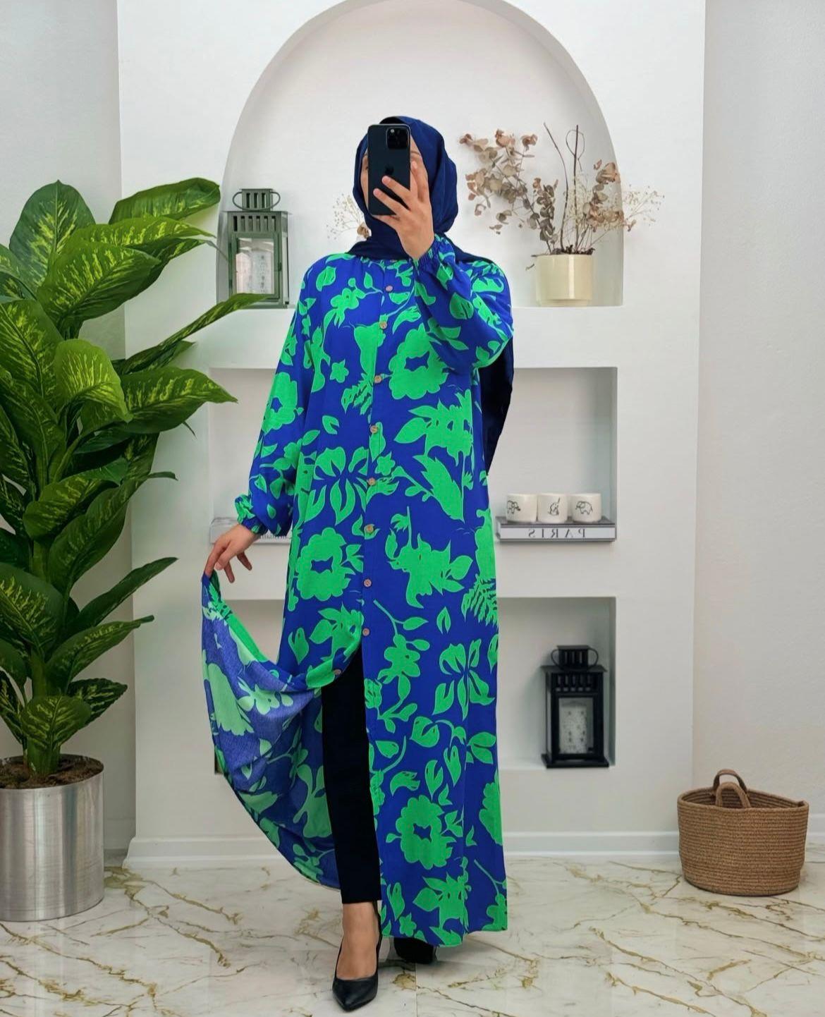 Viskon kumaştan üretilmiş bu elbise, yumuşak ve dökümlü yapısı sayesinde gün boyu konfor sağlar. Boydan düğmeli tasarımı sayesinde kolayca giyilip çıkarılabilir. Tunik formu, elbiseyi ister tek başına ister pantolon/tayt üzerine kombinlemeye uygun hale getirir.
