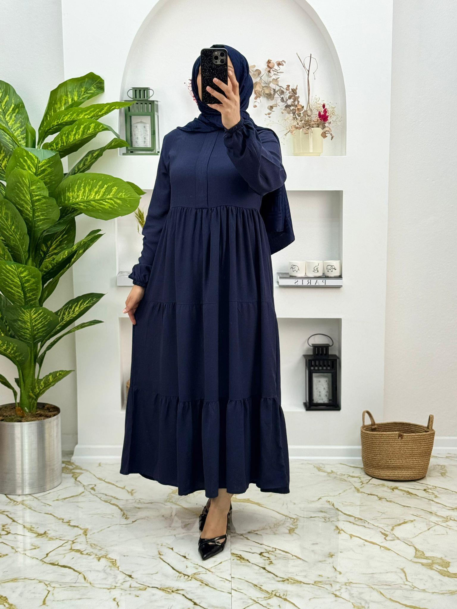 3421 pamuklu kaşmir kumaş önden patlı elbise lacivert (E007-3421)
