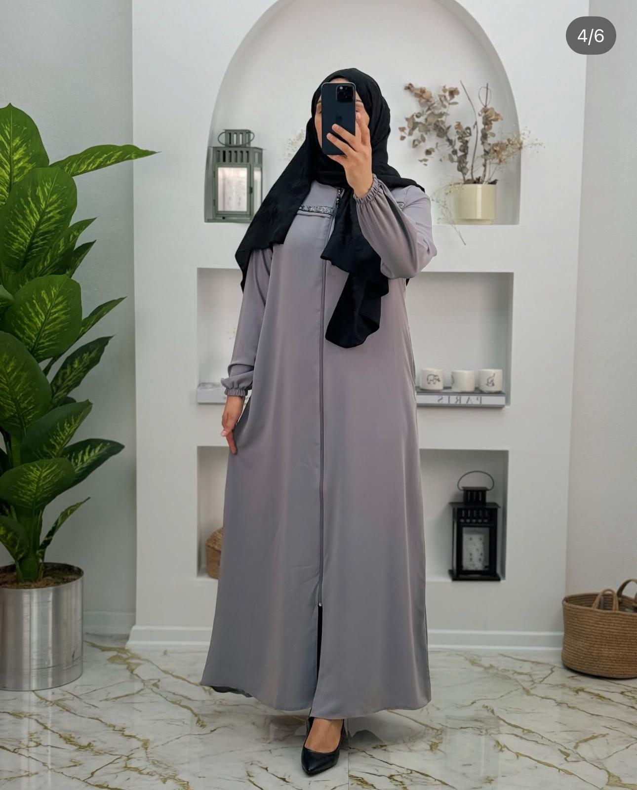 4455 medine ipegi ferace önü simli cepli ferace Gri