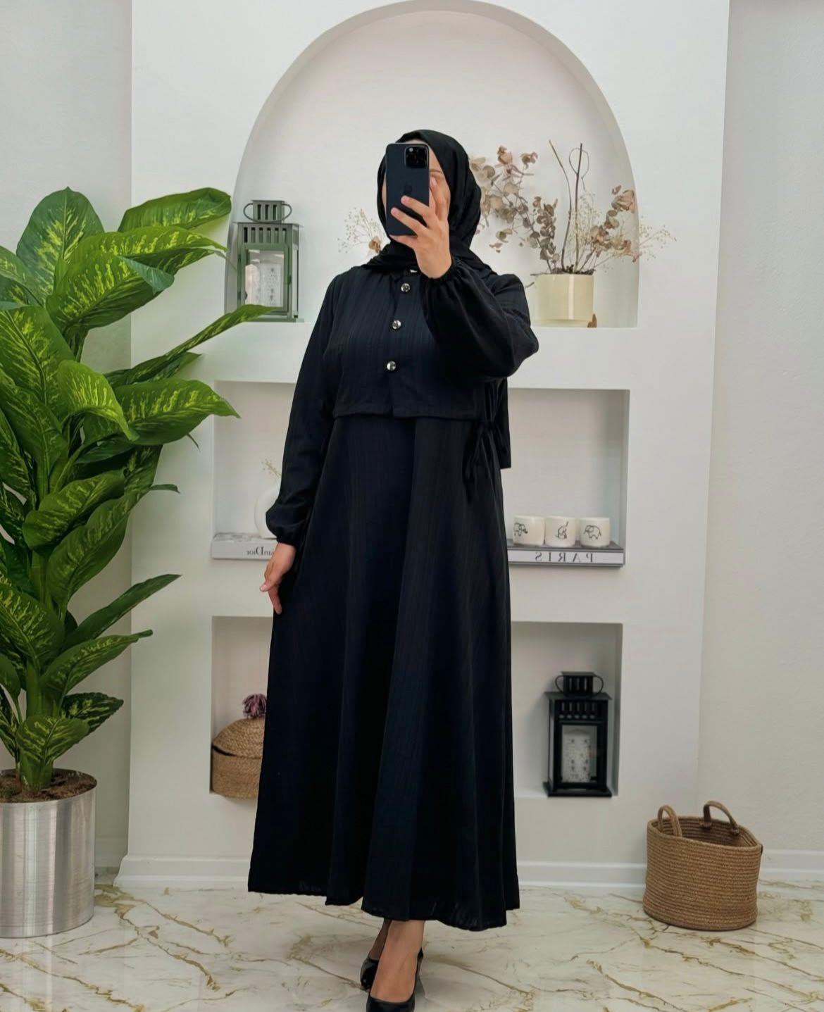 4508 Yeni Sezon Filamlı Keten Kumaş Yelekli Model Renk Siyah