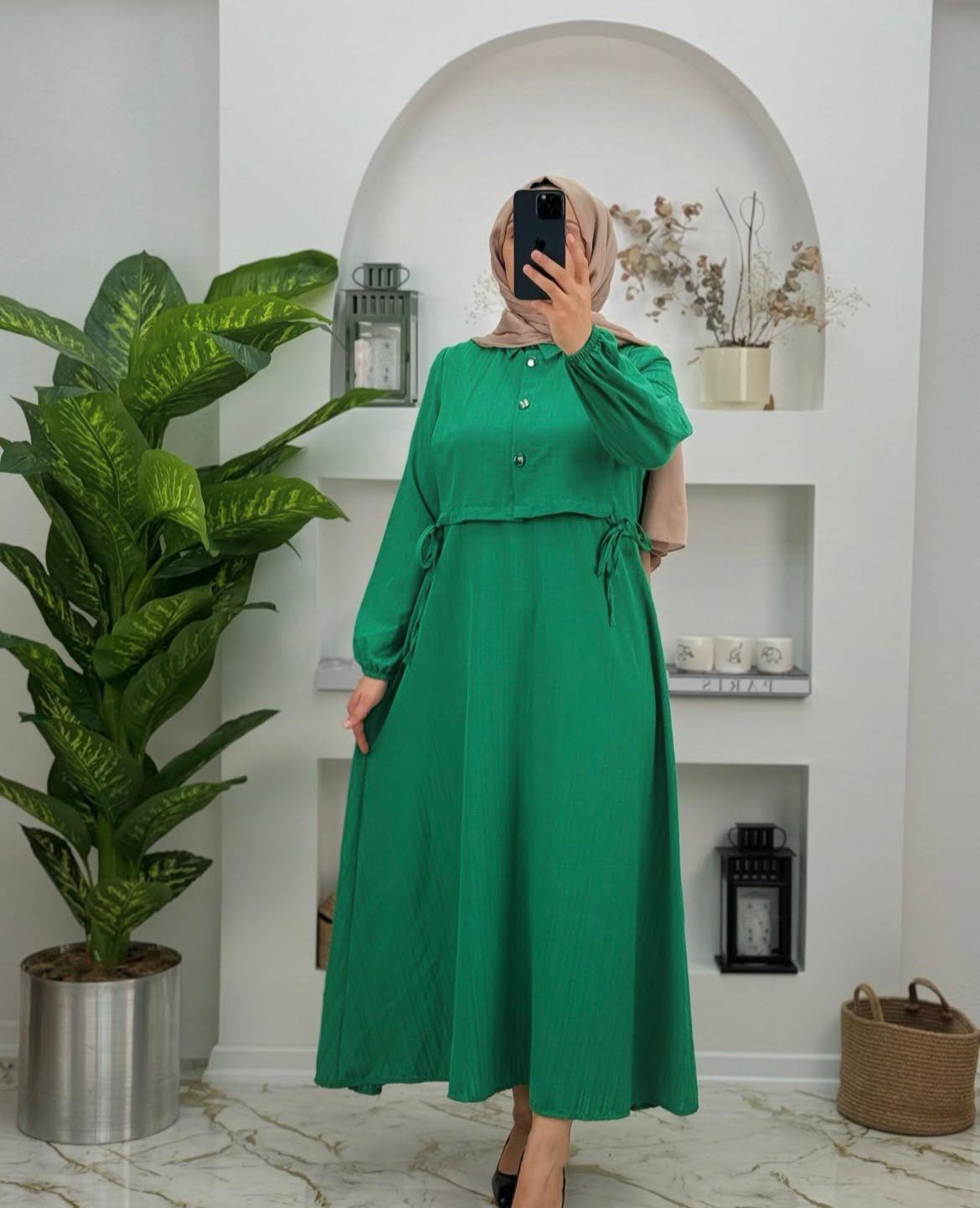 4508 Yeni Sezon Filamlı Keten Kumaş Yelekli Model Renk Yeşil (D005-4508)
