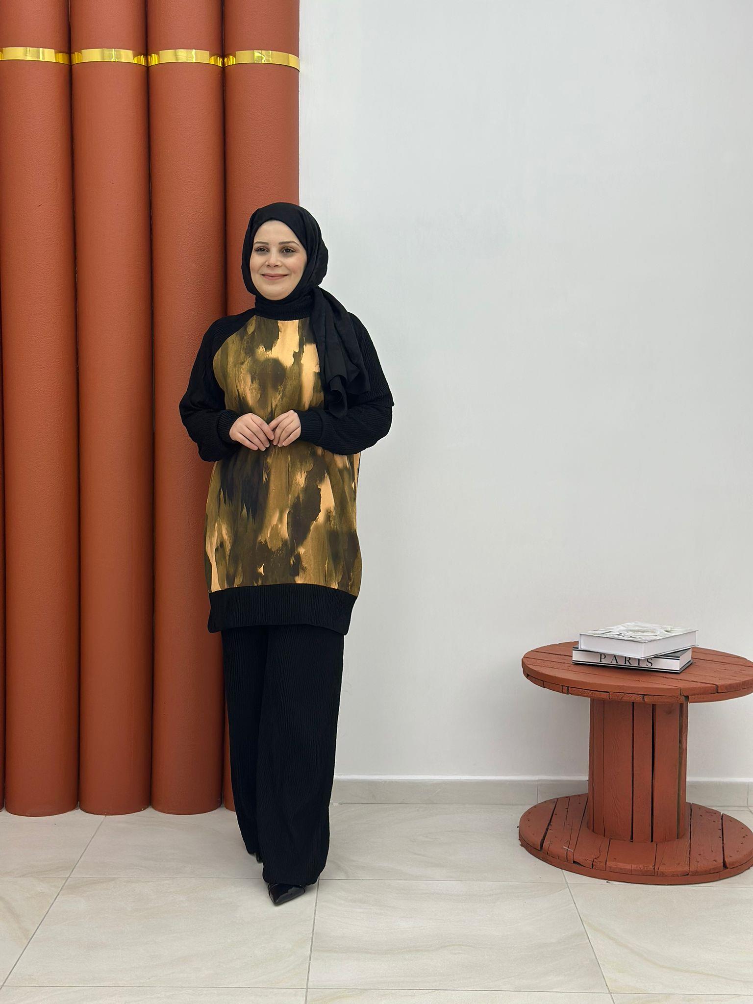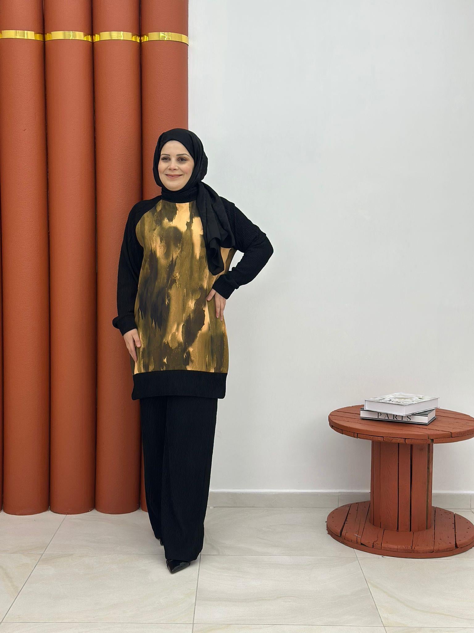 5487 piliseli ikili takım dijital baskılı sarı (A009-5487)
