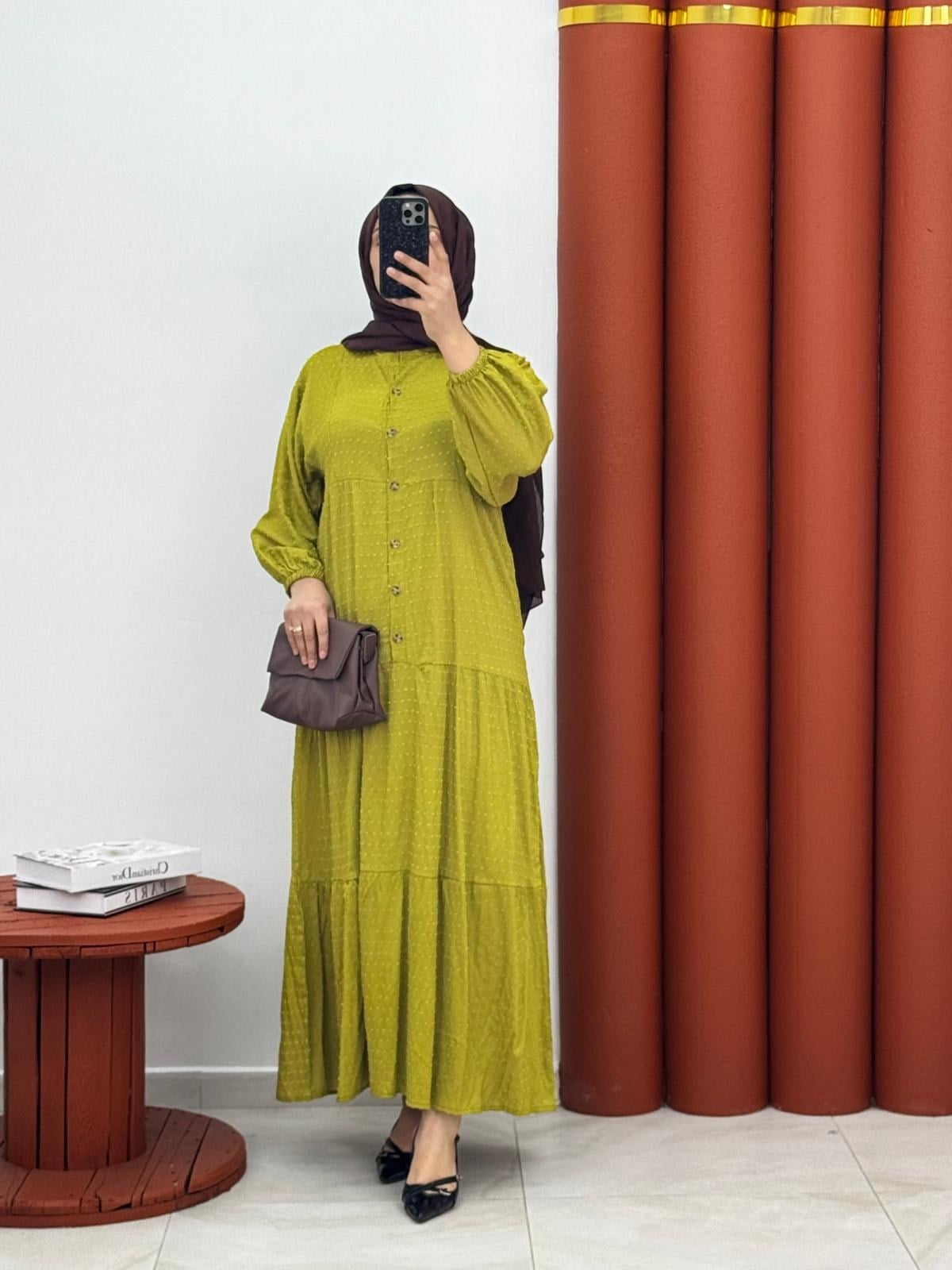 Kırinkıl ponpon dokulu kumaştan tasarlanan bu Alaçatı elbise, yarım düğmeli detayıyla hem rahat hem de zarif bir stil sunar. Hafif yapısı ve şık görünümüyle yaz günlerinde hem günlük hem de özel kombinler için ideal bir tercihtir.