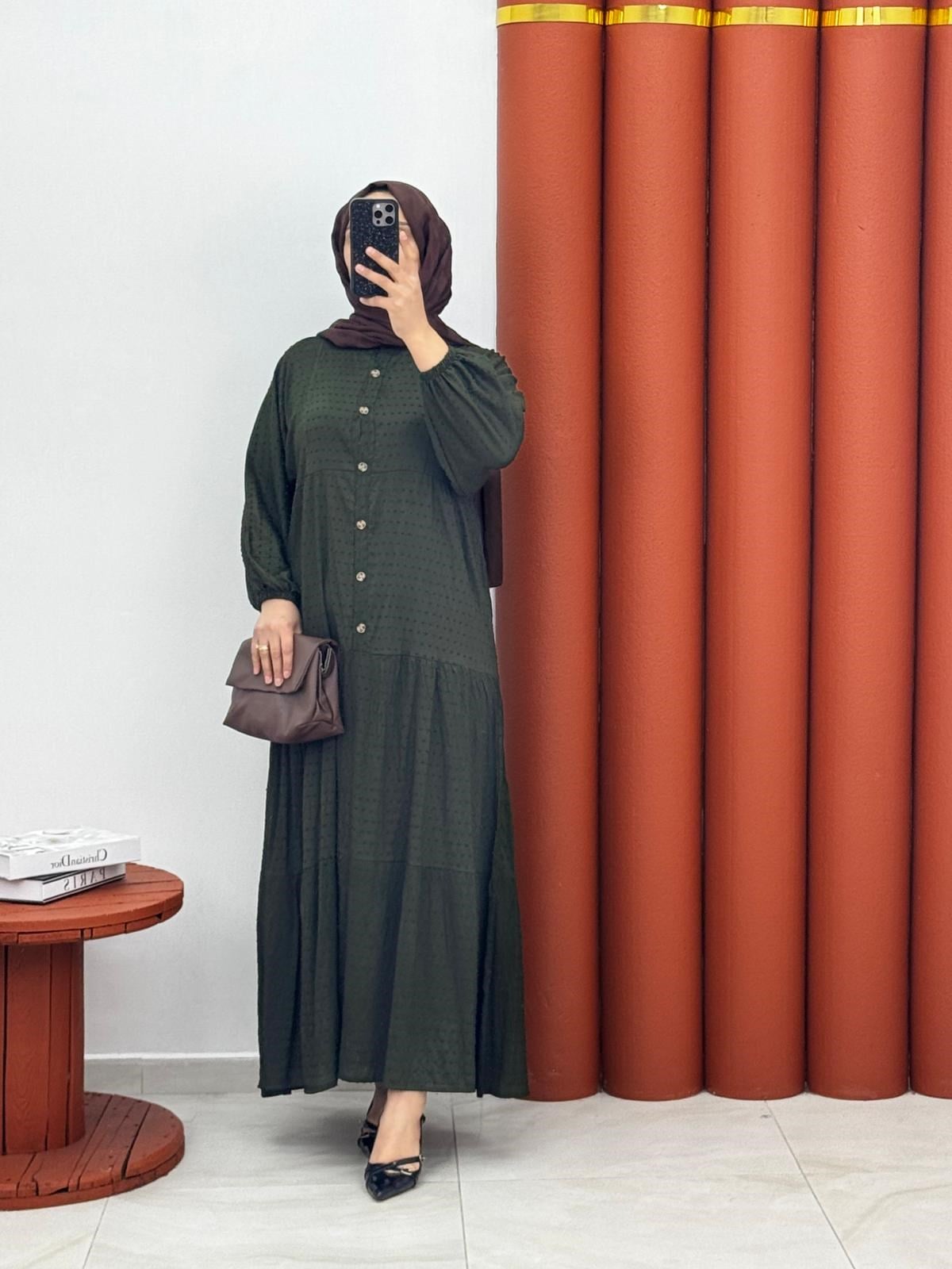5624 Kırnkil  ponpon kumaş elbise yeşil