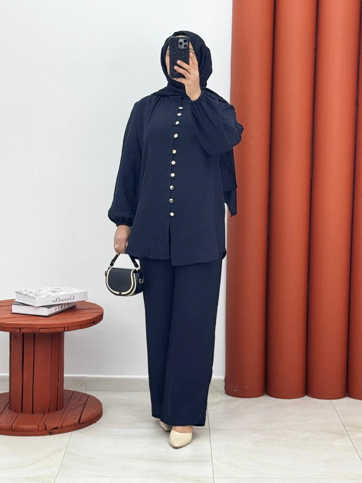 5869 Müslin kumaş dügmeli ikili takım siyah