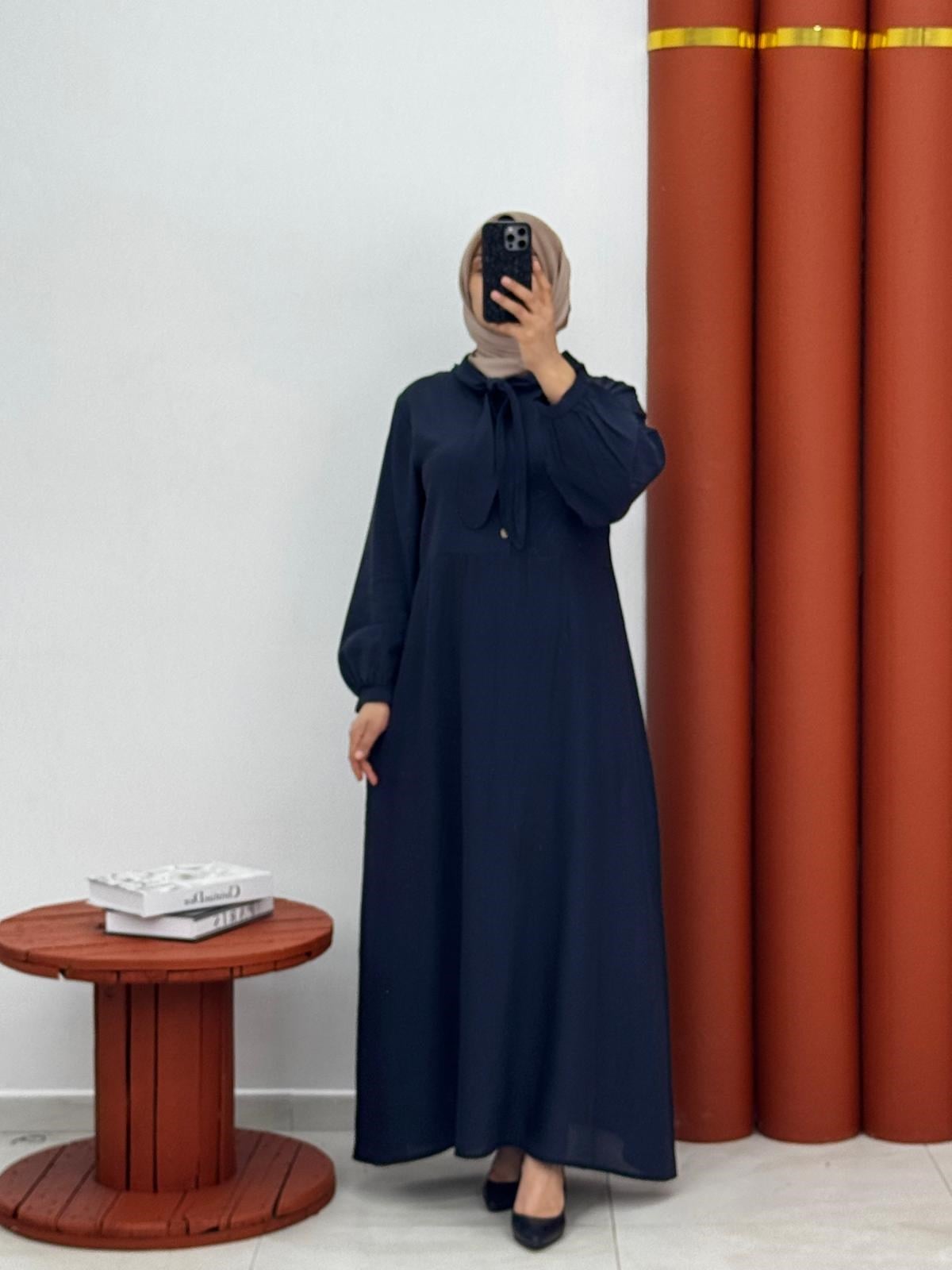 Yumuşak ve nefes alabilen modal kumaşıyla gün boyu konfor sunan bu şık elbise, yarım düğmeli tasarımı ve fular detaylı yakasıyla zarif bir görünüm sağlar. Seyyar kemeri sayesinde belinizi vurgulayarak feminen bir siluet oluşturur. Hem günlük kullanımda hem de özel anlarda rahatlıkla tercih edebileceğiniz modern ve şık bir parçadır.