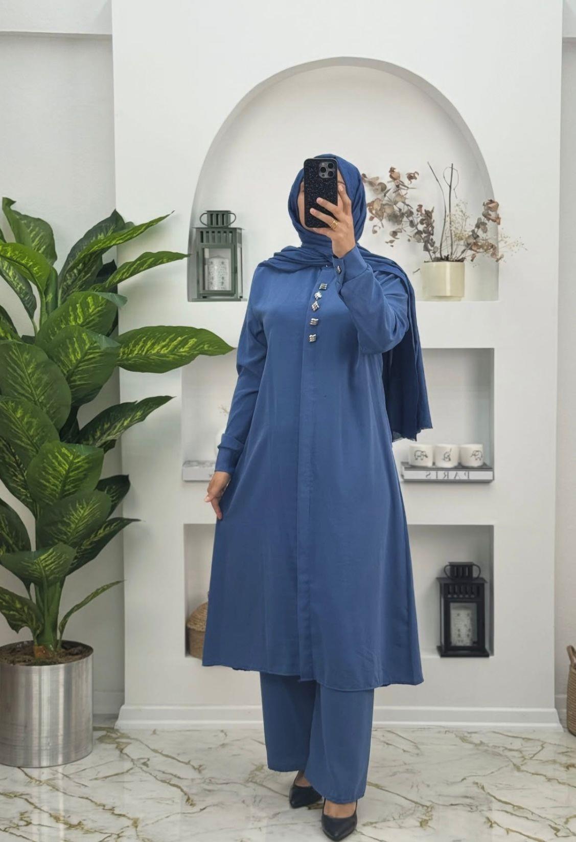 6565 Yeni Sezon Airobin Önden Düğmeli İkili Takım Renk Mavi