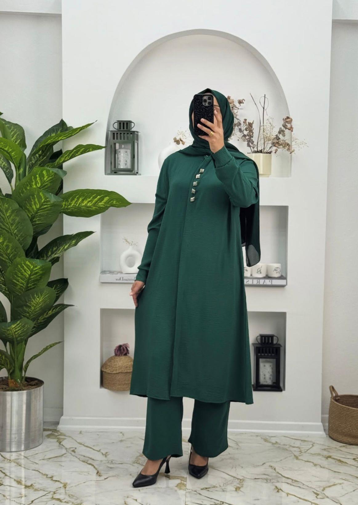 6565 Yeni Sezon Airobin Önden Düğmeli İkili Takım Renk Yeşil