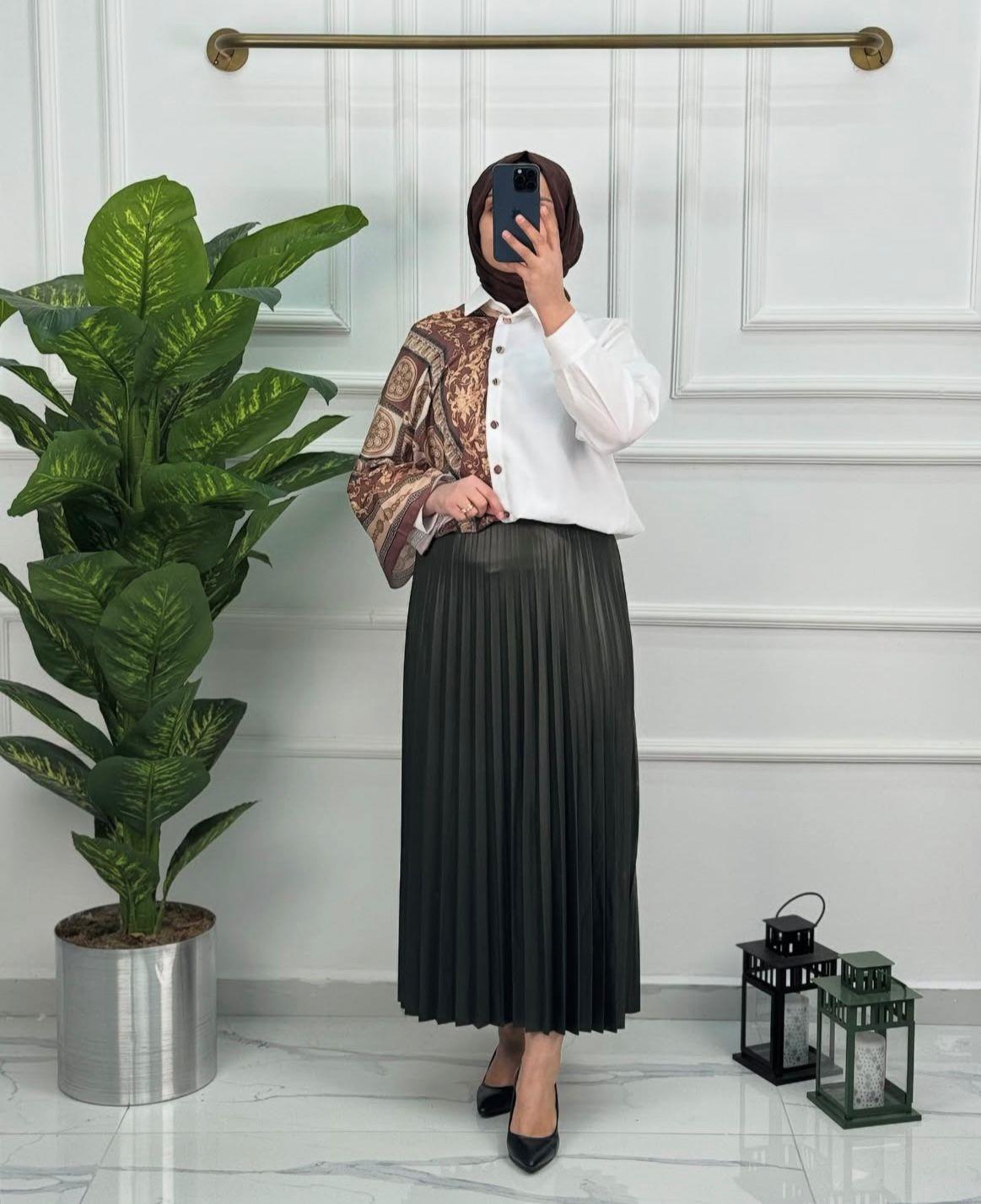 7090 Yeni Sezon Pliseli Etek Renk Yeşil (D006-7090)