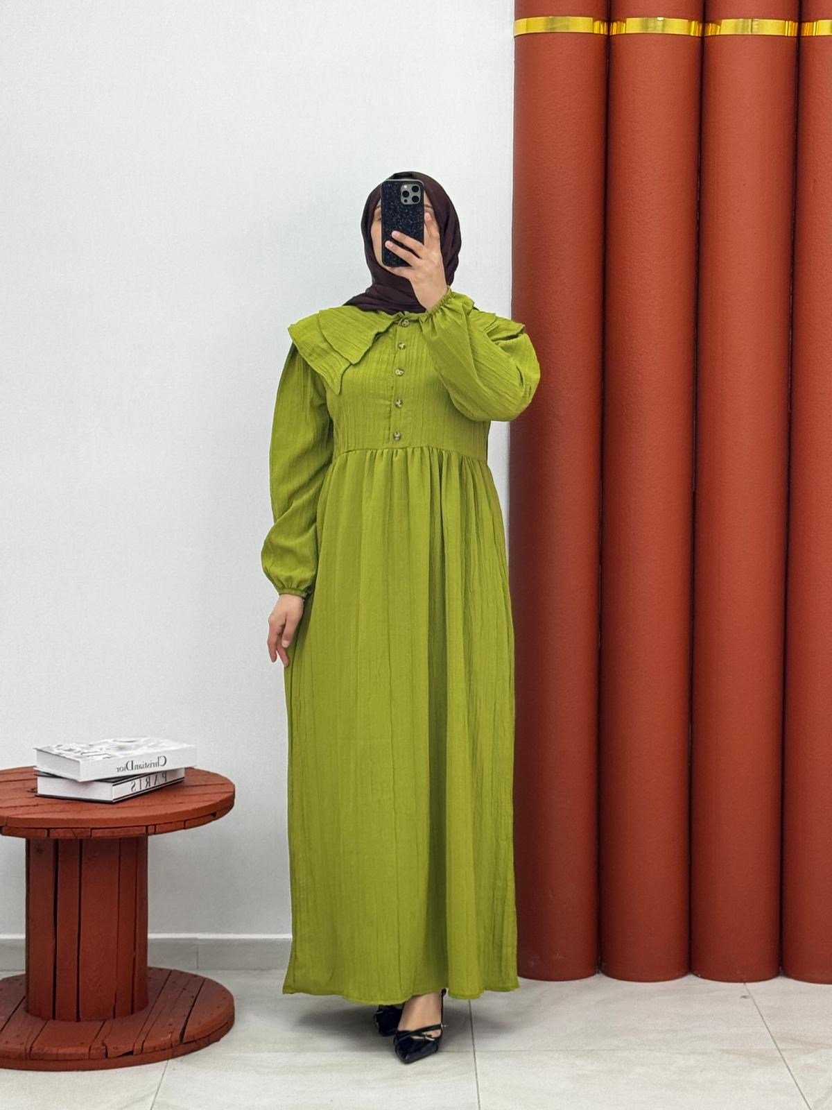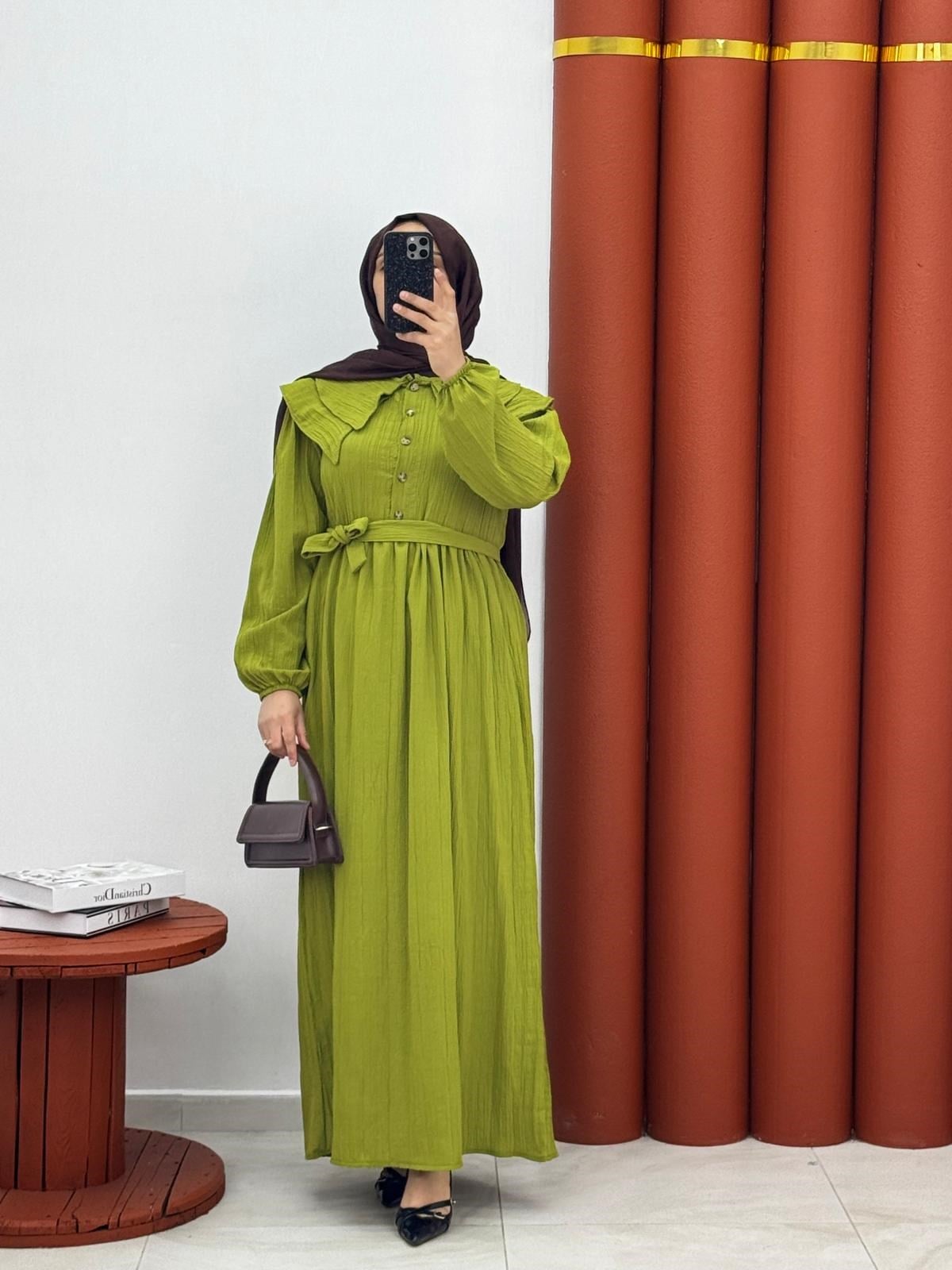 7890 Kırınkil kumaş bebe yaka yag yeşili (D012-7890)