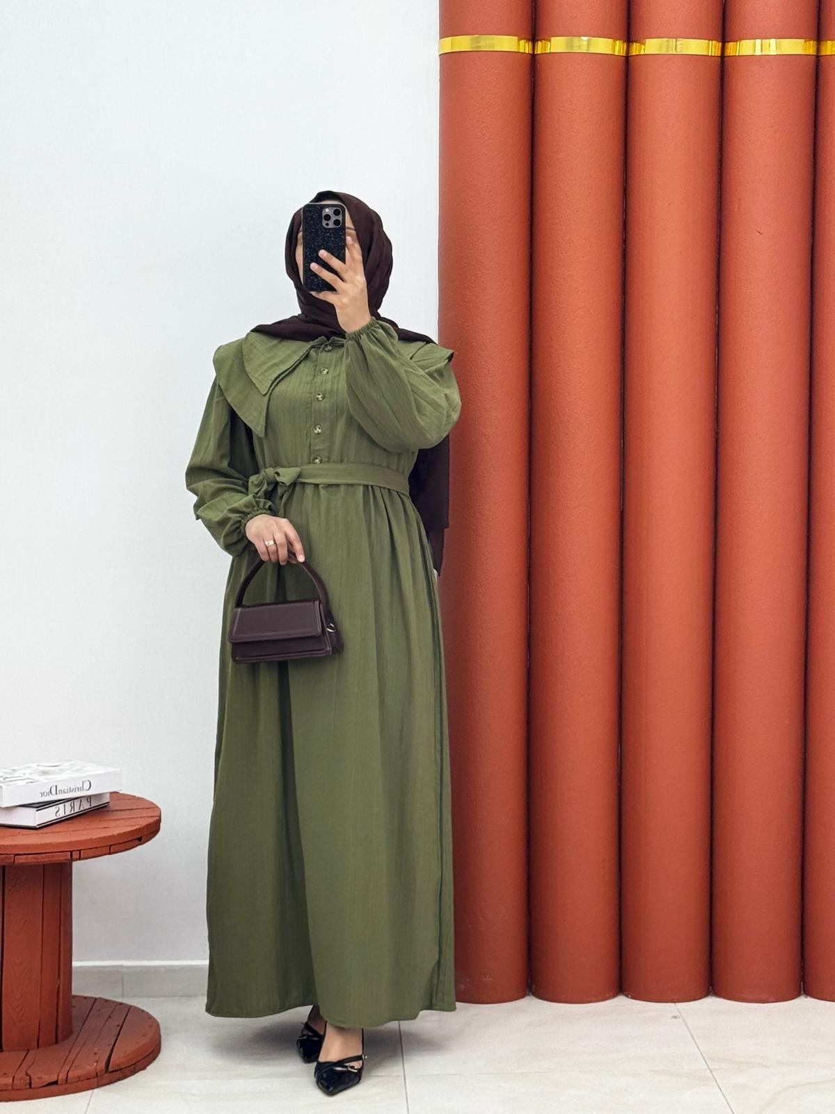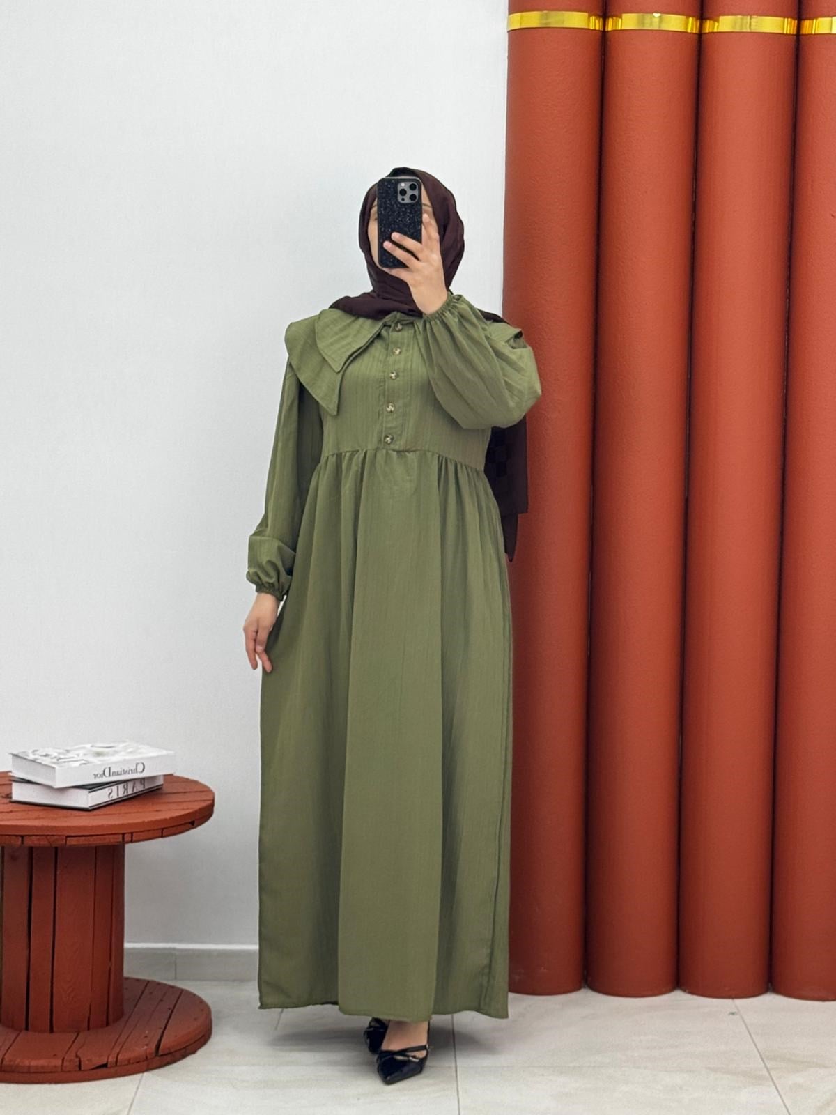 7890 Kırınkil kumaş bebe yaka yeşil (D012-7890)