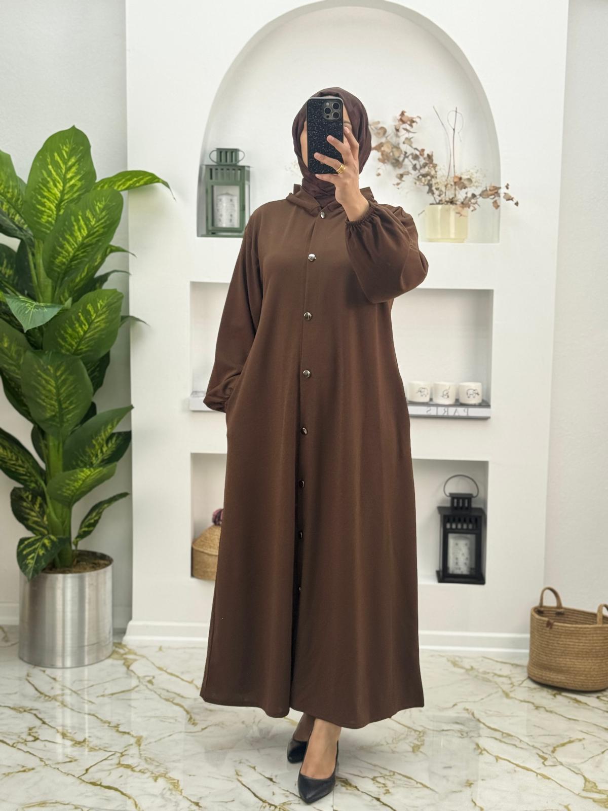 8587 Yeni Sezon İthal Scuba Kumaş Kapşonlu Model Elbİse Renk Kahverengi