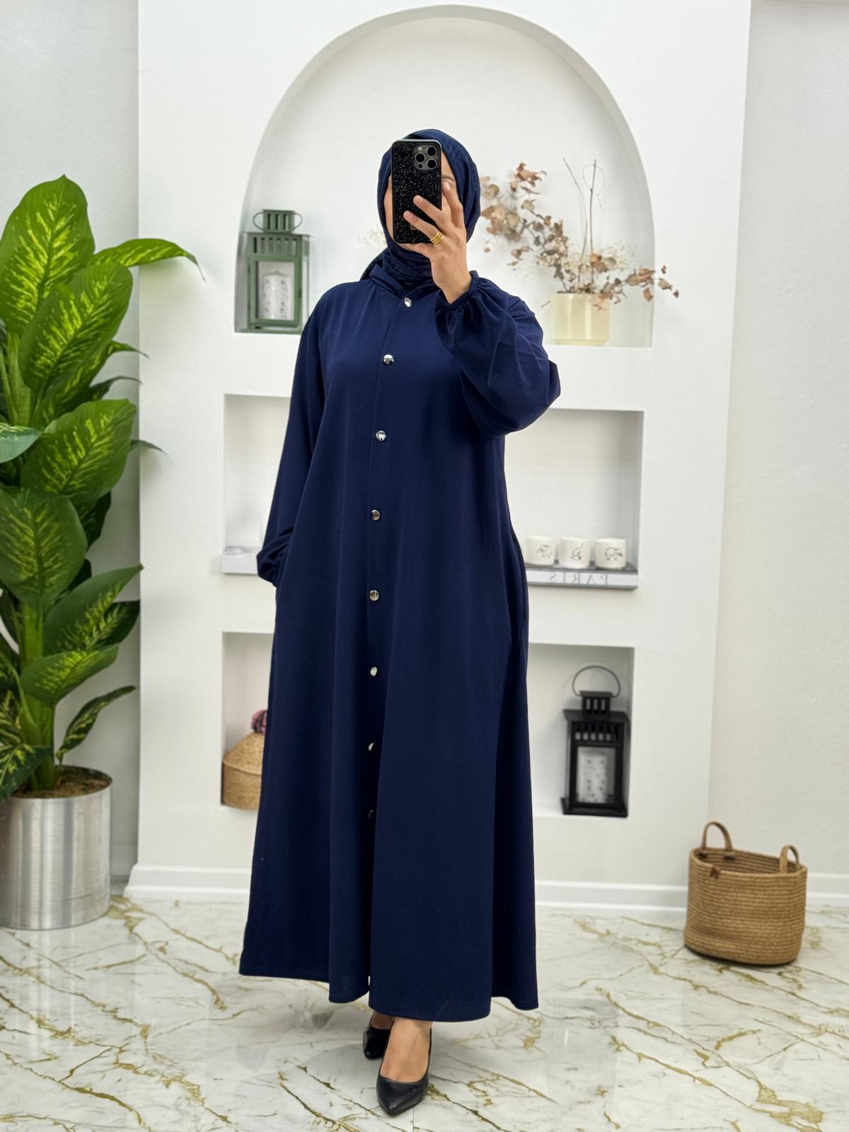 8587 Yeni Sezon İthal Scuba Kumaş Kapşonlu Model Elbİse Renk Lacivert