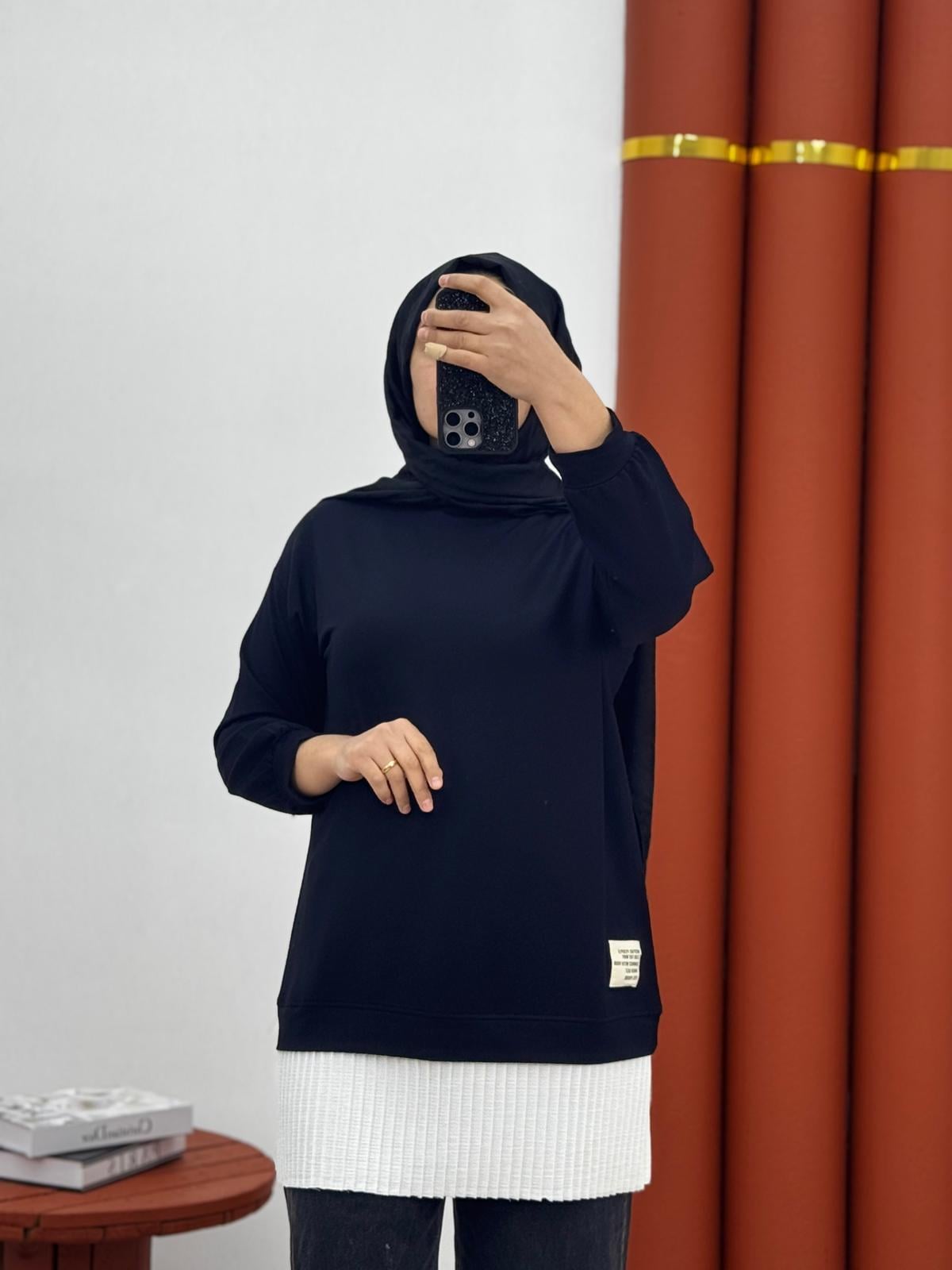 8888 altı pileli tunik siyah (E001-8888)