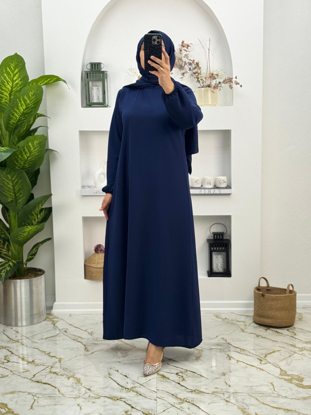 İthal scuba krep elbise, scuba kumaşın tok ve toparlayıcı yapısı ile krep dokunun hafif dokusunu bir araya getiren şık ve modern bir tasarımdır. Hem rahat hem de elegan bir duruş sunar. Özel davetlerden ofis kombinlerine kadar geniş kullanım alanına sahiptir.