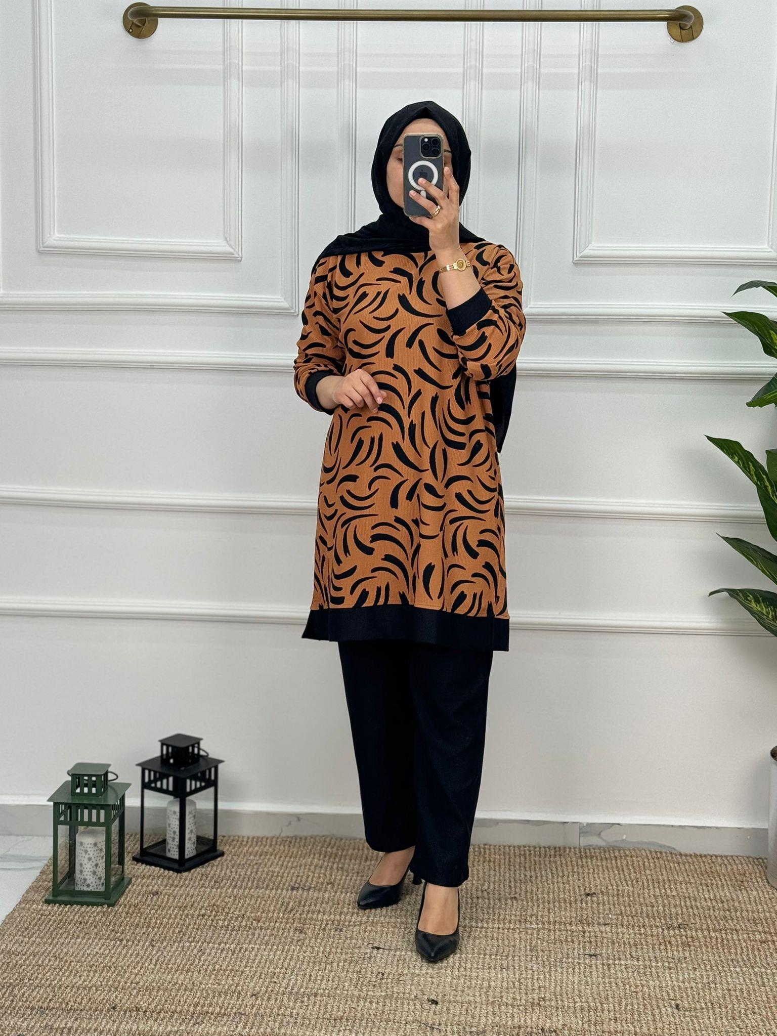 Karin Kumaş Pamuklu İkili Takım Elbise 017 Kahverengi (ZHRA-017)
