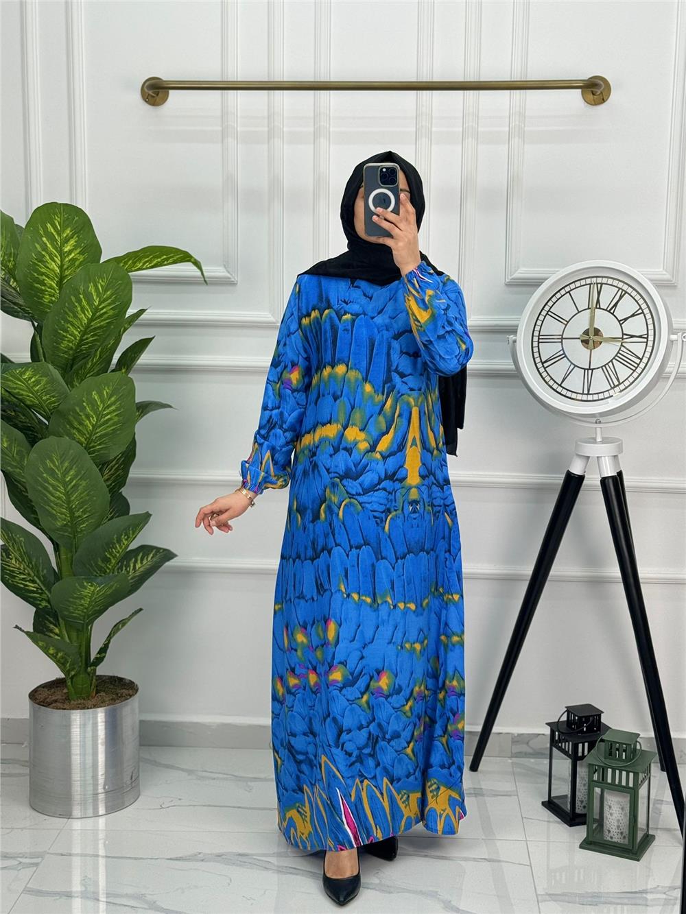 Yeni Sezon Viskon Kumaş Seyyar Kemerli Elbise 084 Mavi (B007-084)